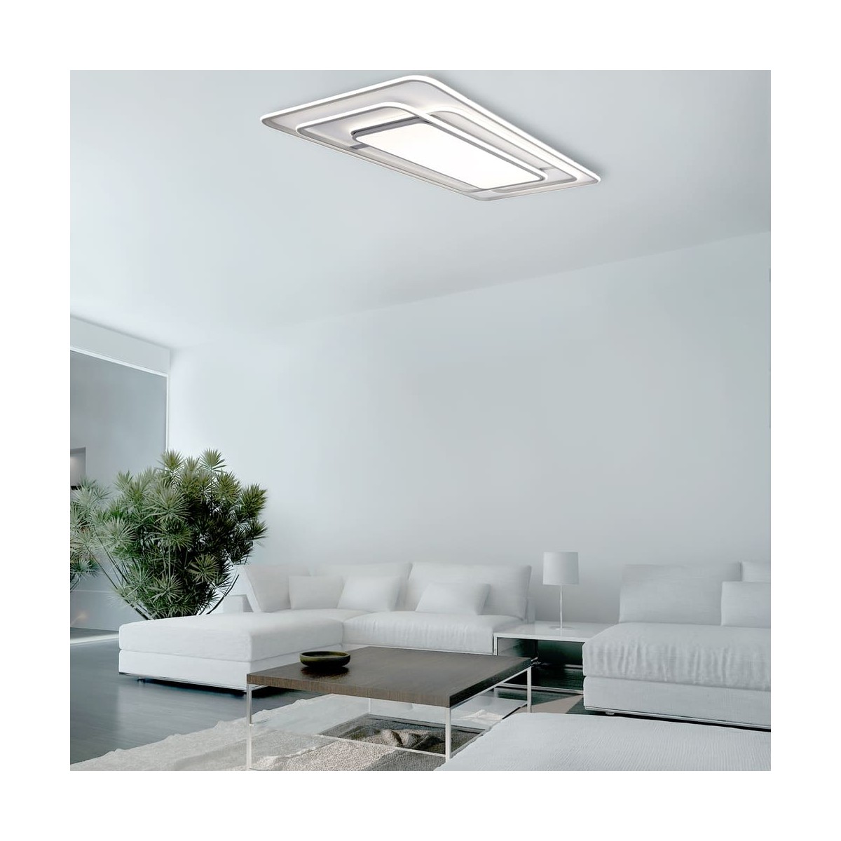 Decorative LED flush ceiling lamp with three-temperature light. The structure of the ceiling lamp creates different rings of light that can be combined with different shades of light to create different lights. With the control included, in addition to adjusting the light tone, the intensity can be regulated and switched on and off. It has a night lighting mode and a memory function to recover the last lighting set.