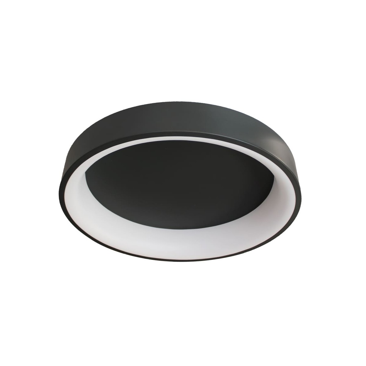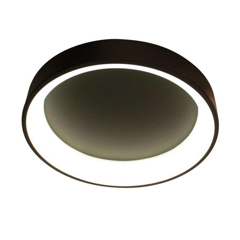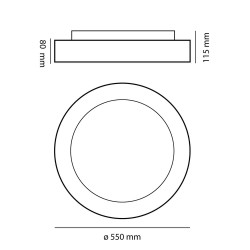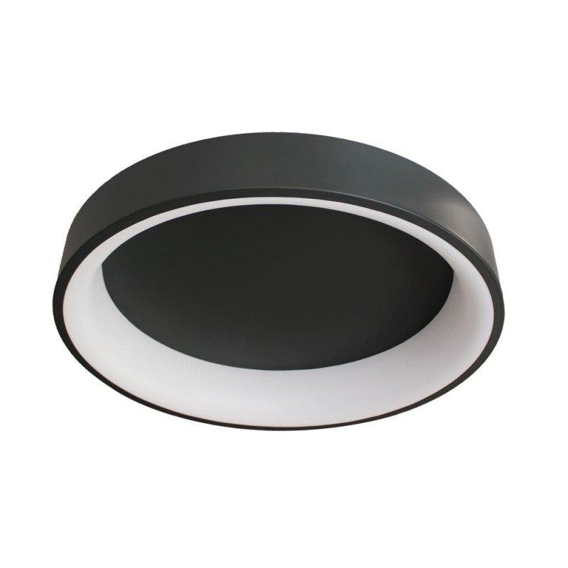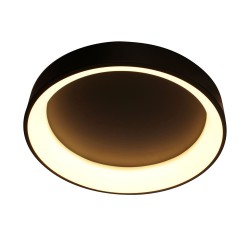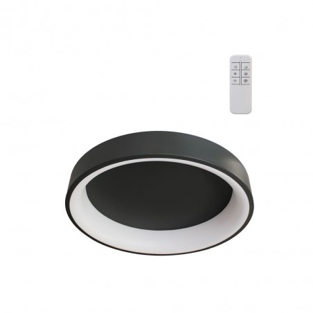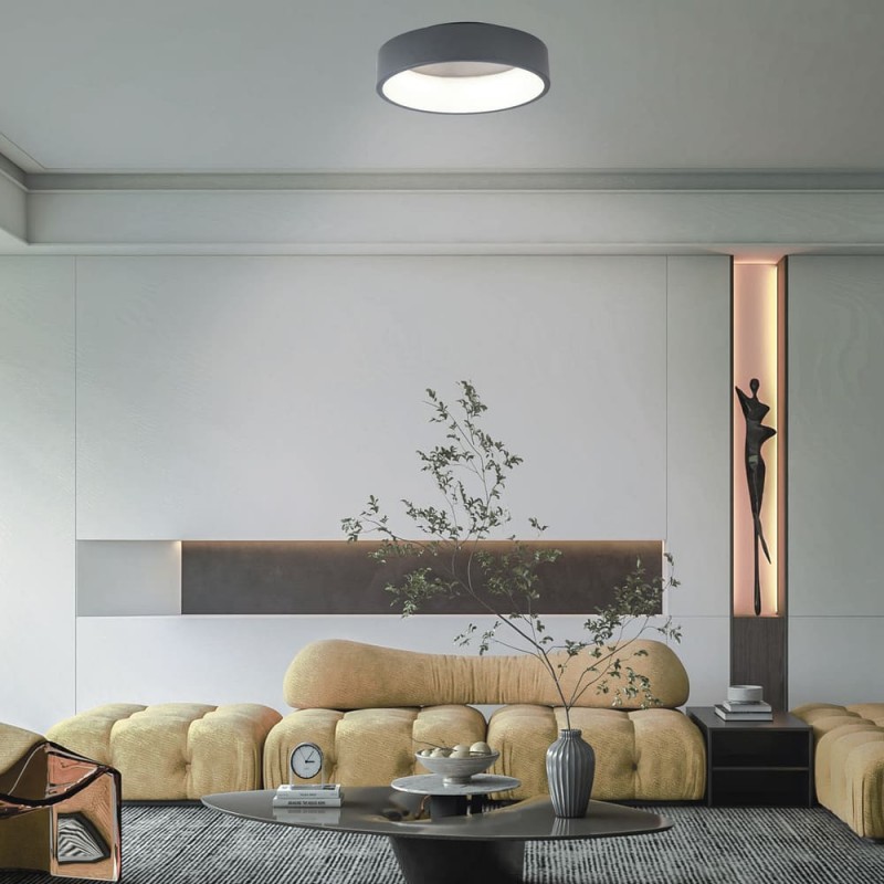 LED ceiling light with three colour temperatures. Circular ceiling light with remote control to regulate the intensity of lumens and the colour tone of the lighting. Made from anthracite grey aluminium and polycarbonate diffuser. It has a power-on memory, so that when it is switched on and off, the last light configuration is maintained.