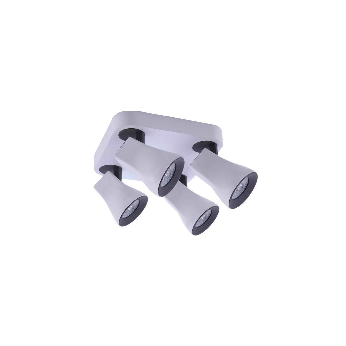 Four spotlight ceiling plate designed in a white finish with four adjustable heads. This type of spot fittings with multiple heads that can be adjusted to suit the room at your individual taste, are the perfect solution for big rooms, commercial spaces, shop windows. 4xGU10 max. 50W (bulbs not included).