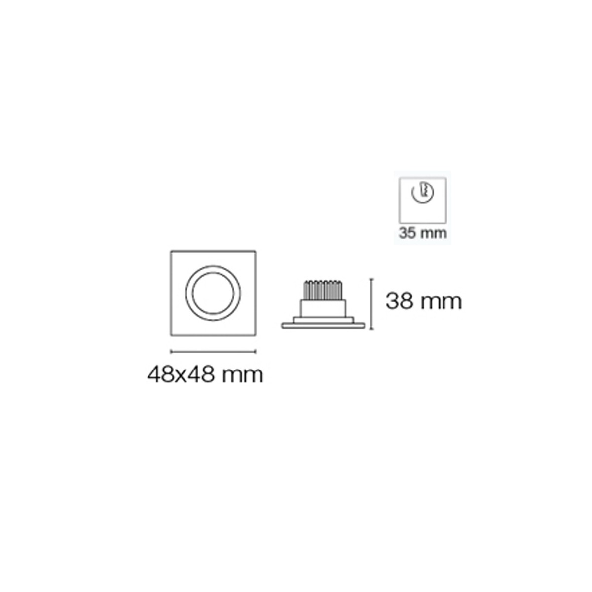 Pack of 3 recessed LED lights in a square design and white finish. This is a simple and functional ceiling light perfect to use in a kitchen or corridor. Thanks to its deep shape you will get a low glare lighting. The 3 watt COB LED light provides 300 lumens of neutral light (4000K). *White driver included.