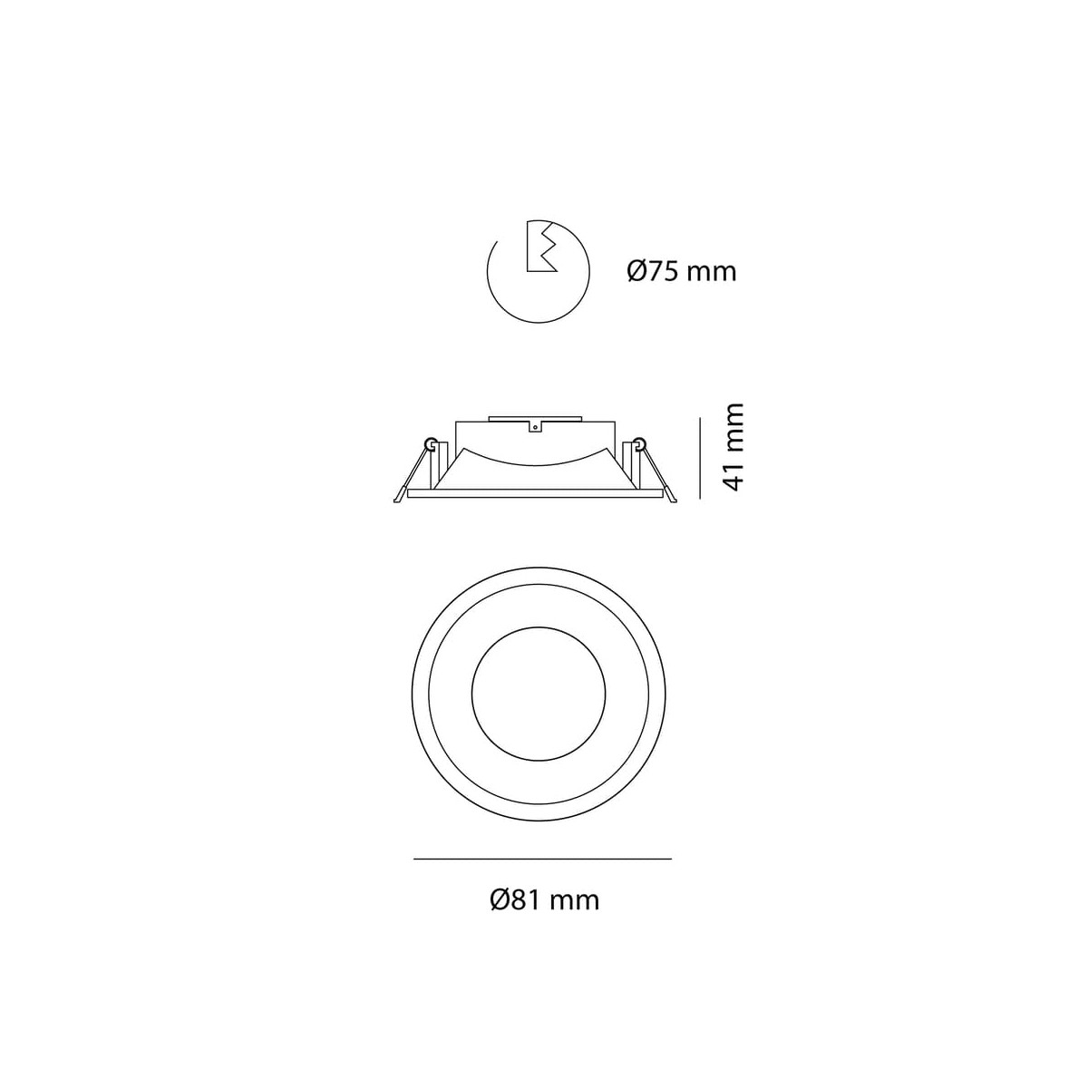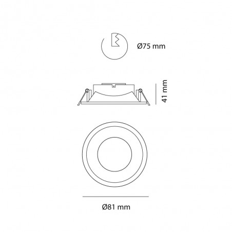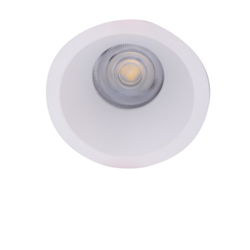 Fixed round recessed spotlight made of aluminium with white textured finish. Back replacement bulb. Available in square and other finishes. A 75mm diameter hole in the ceiling is required for installation. This model includes GU10 lampholder.