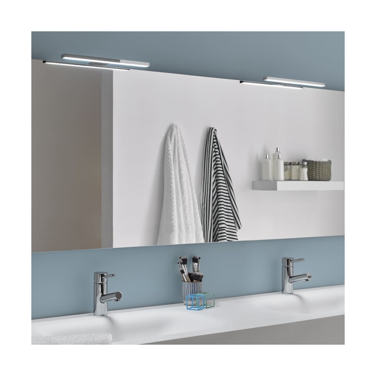 7W LED wall light, with very cold light of 5700K, 417lm. Aluminium and ABS structure of 303mm. The driver is integrated into its structure. The LED wall light is suitable for installing in cabinets, wood brackets and mirrors with a multi fixture block.