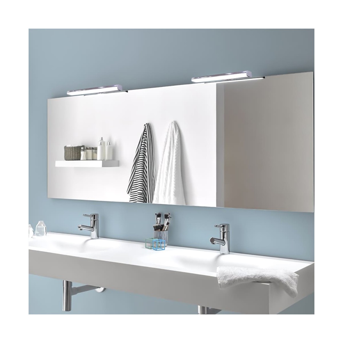 Madrid LED Mirror light made of aluminium and zamak suitable for installation in the bathroom. Ideal for the bathroom mirror where it will offer a clear and homogeneous lighting. Integrated 6W LED lighting, adjustable colour temperature. Driver integrated into the structure of the wall light.