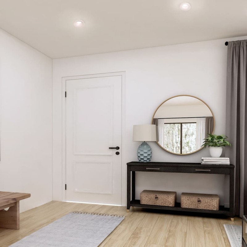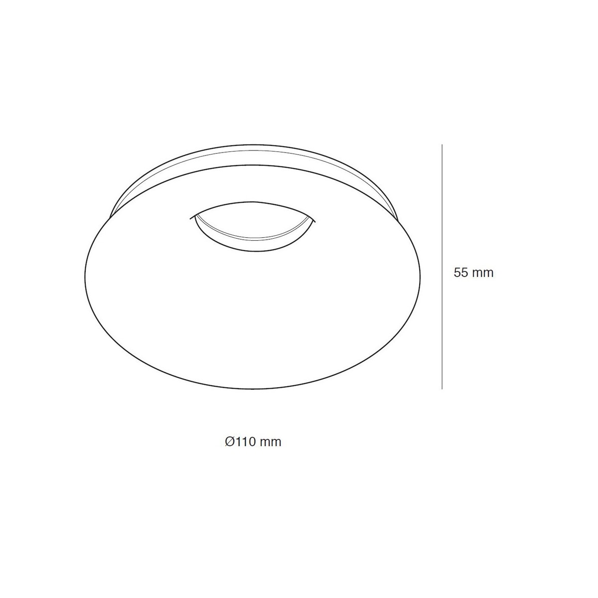 Round Recessed Aluminium Spotlight with white finish. With an external diameter of 110 mm. Includes a GU10 lamp holder.