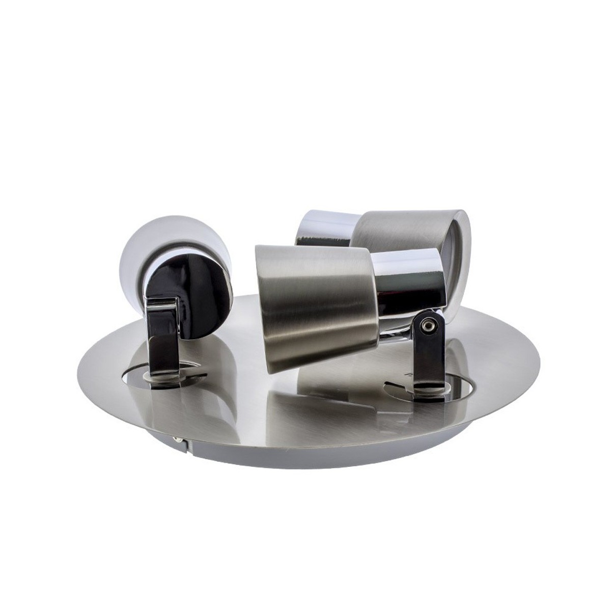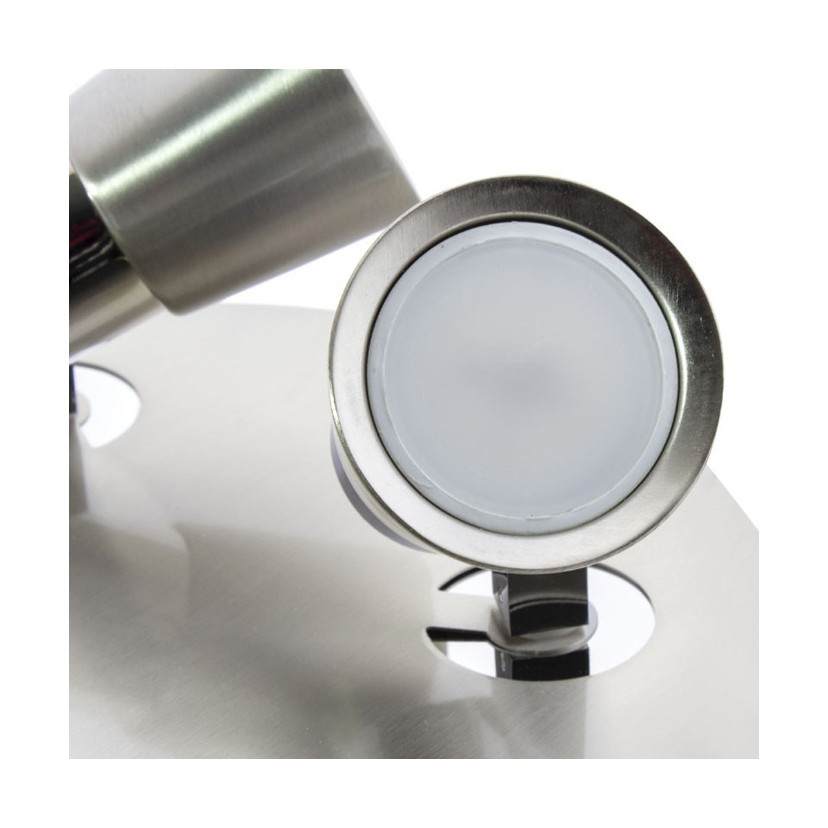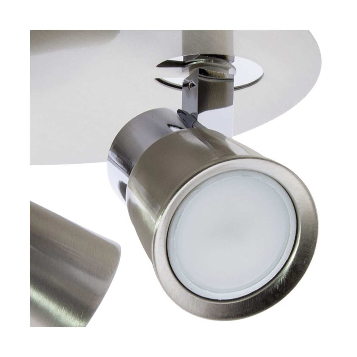 3 Spotlights Flush Light Iris. Made of iron for GU10 bulb, very easy to install and replace the bulb. This model has nickel finish with chrome parts which makes this spotlight perfect for decorating rooms and bedrooms while directing the light focus in the desired direction. You can install it on both ceilings and walls.