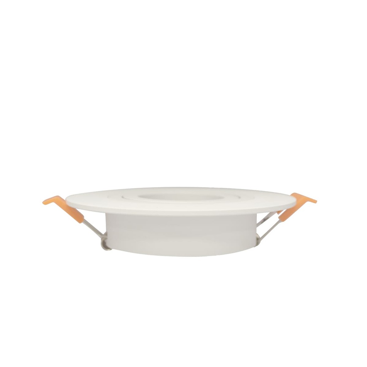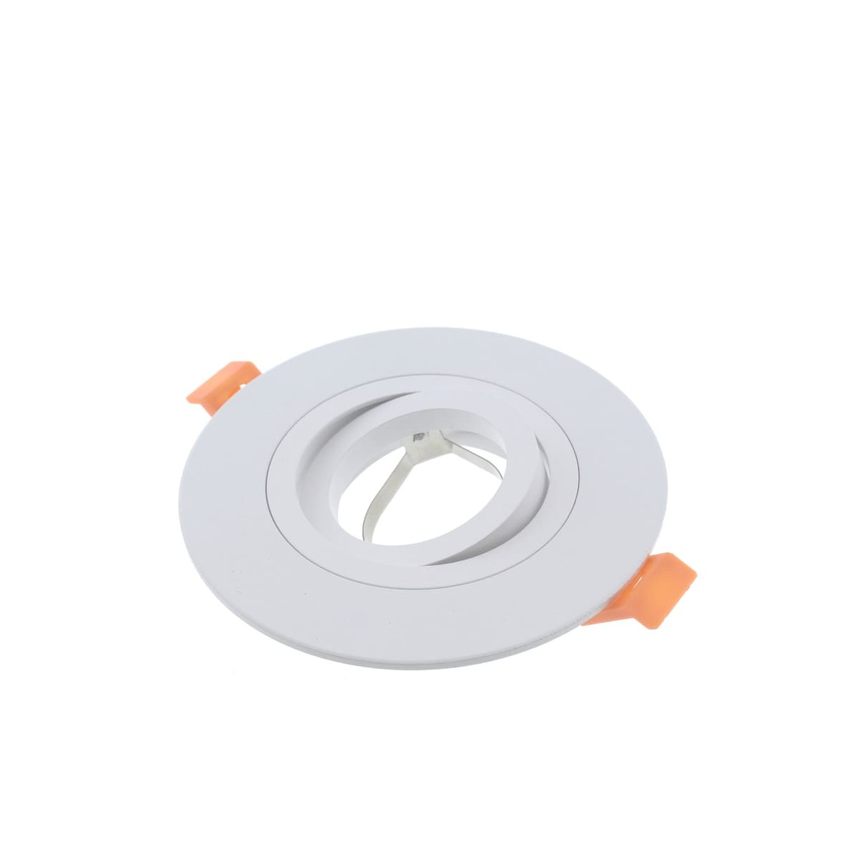 Tilting recessed light in a technical white finish. The Helium Plus recessed downlight is made of aluminium, with a circular design for easy integration into the ceiling. It includes a lamp holder for GU10 bulb, and once the bulb is in place it can be easily replaced from the front. The recessed luminaire can be tilted to direct the light point. Technical white finish.