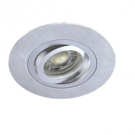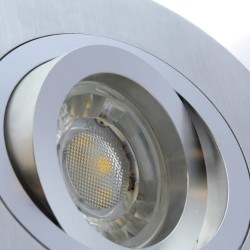 Tilting recessed light in stainless steel finish. The Helium Plus recessed downlight is made of aluminium, with a circular design for easy integration into the ceiling. It includes a lamp holder for GU10 bulb, and once the bulb is in place it can be easily replaced from the front. The recessed luminaire can be tilted to direct the light point. Stainless steel finish.