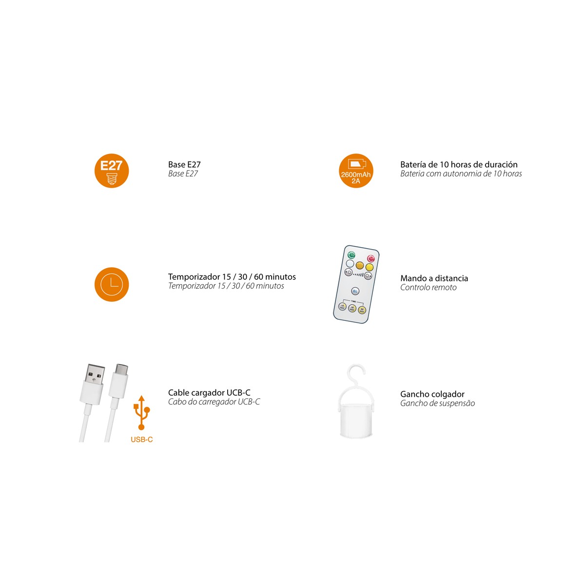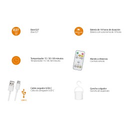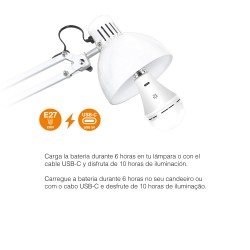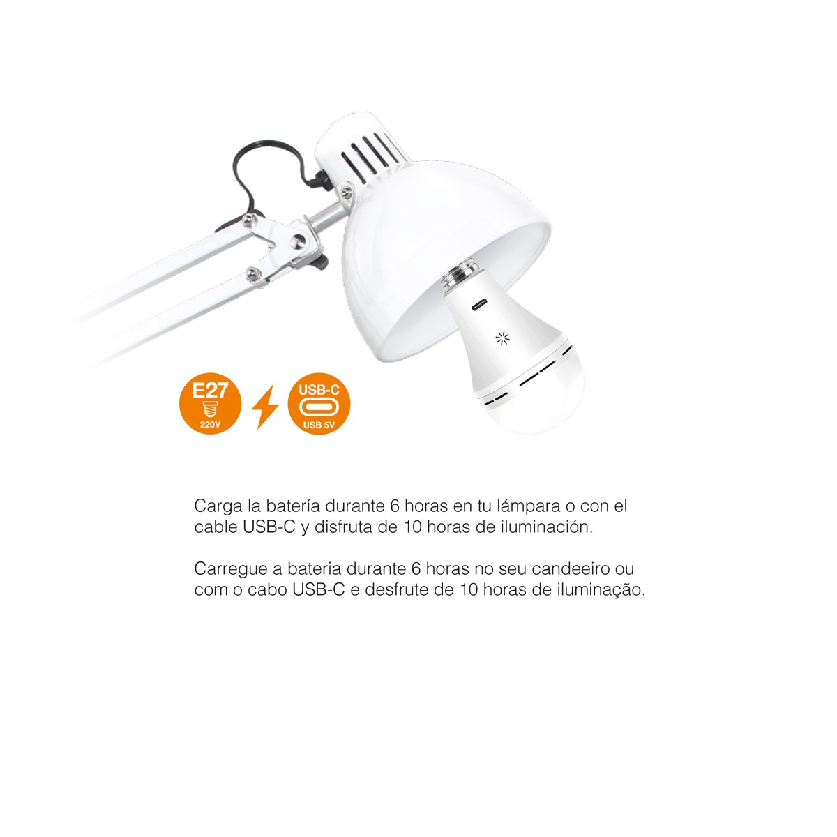 Dimmable LED Bulb E27 6W 500Lm CCT Rechargeable USB Type C