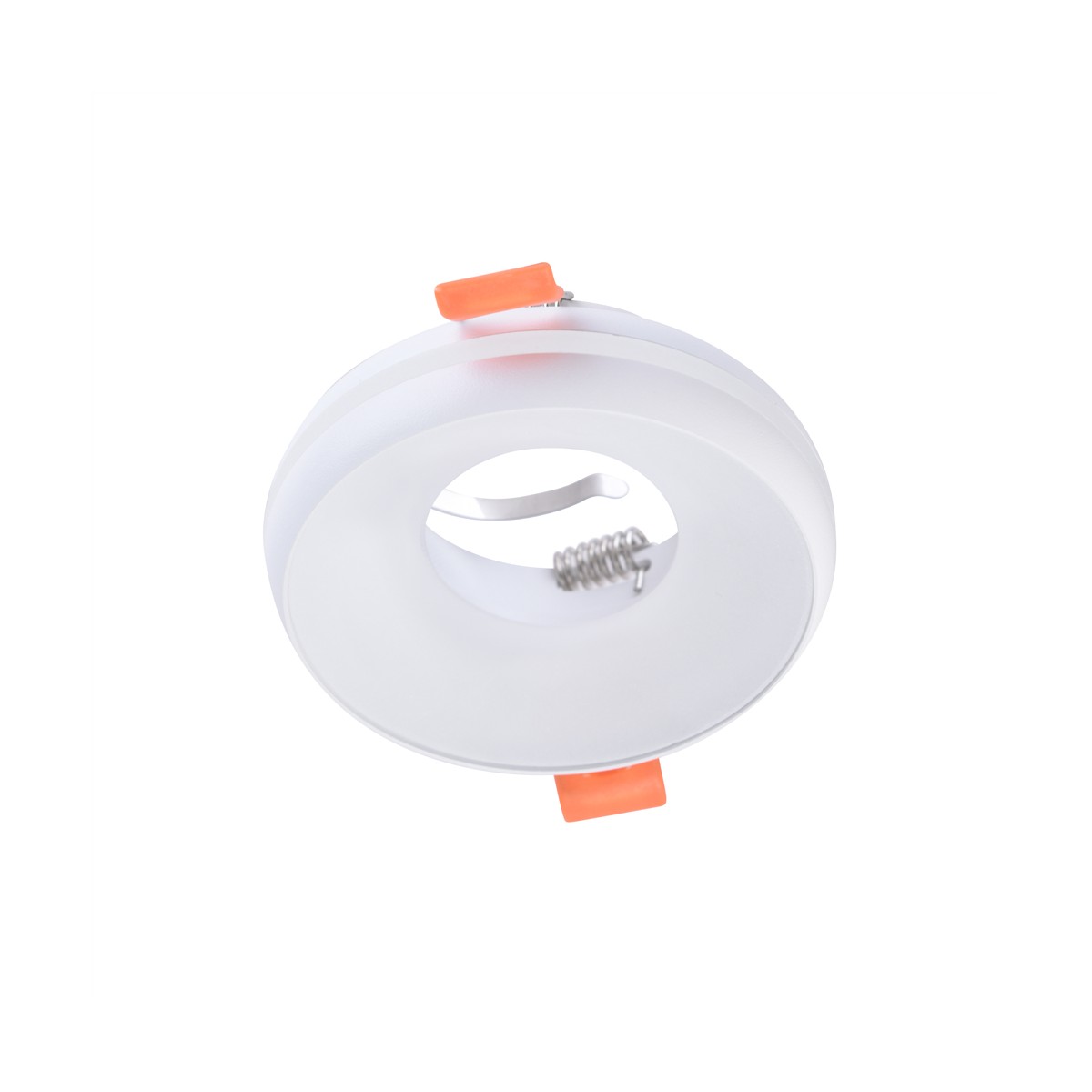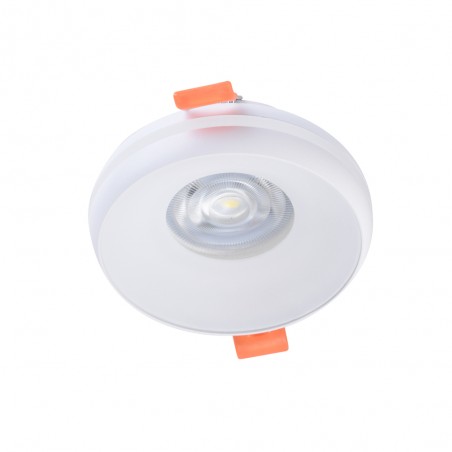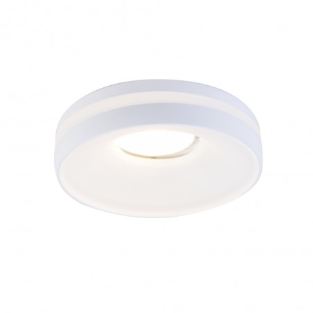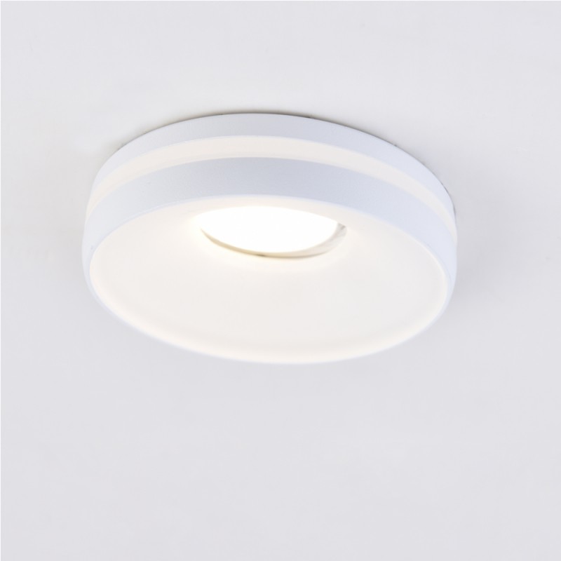 White recessed light with fixed light point. Capable of fitting a GU10 LED bulb that projects directly downwards. The light is projected in a decorative way through the PC diffuser around the recessed downlight. Very practical recessed downlight for installation in the ceiling of living rooms, hallways and other indoor spaces. Drilled hole: 70mm.