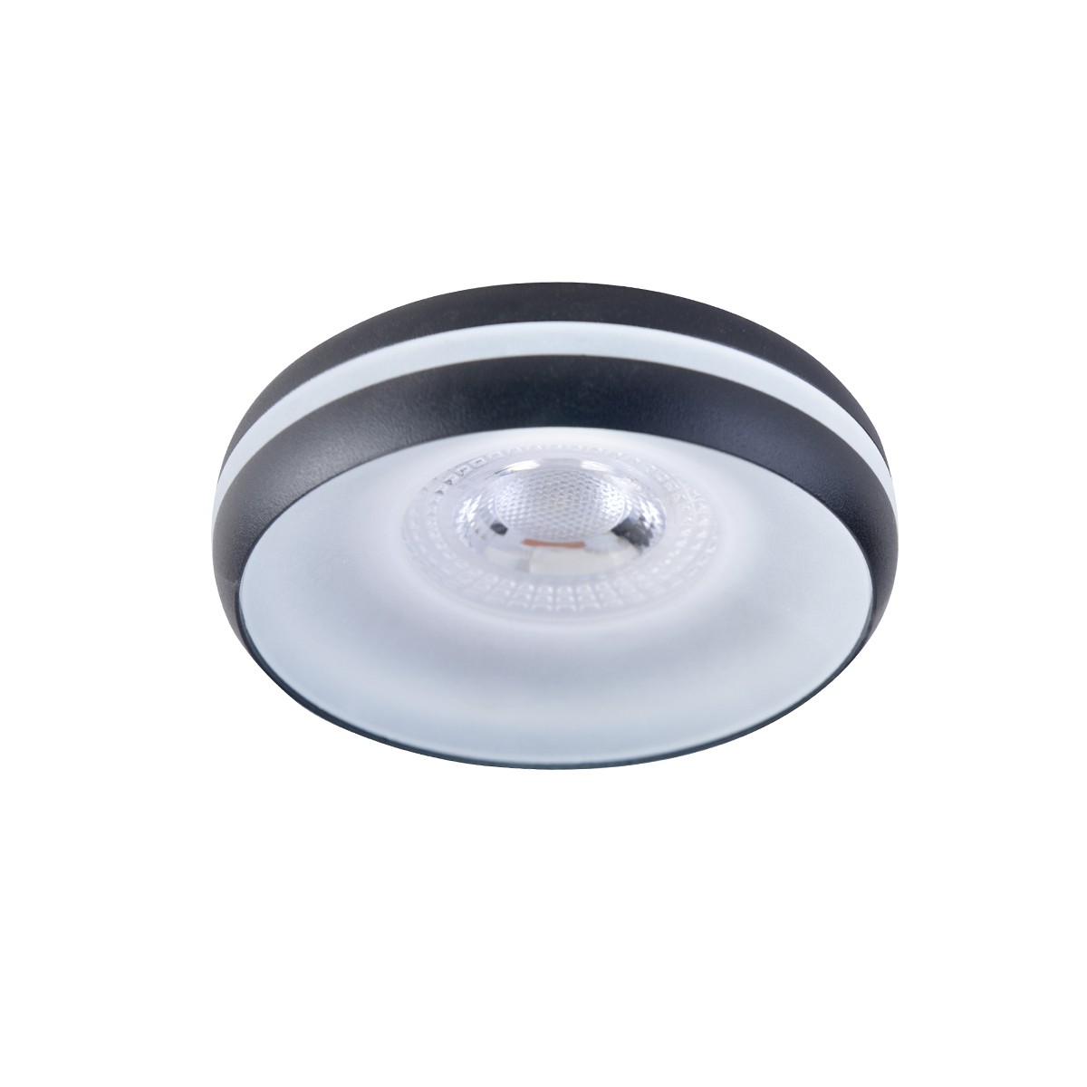 Black recessed light with fixed light point. Capable of fitting a GU10 LED bulb that projects directly downwards. The light is projected in a decorative way through the PC diffuser around the recessed downlight. Very practical recessed downlight for installation in the ceiling of living rooms, hallways and other indoor spaces. Drilled hole: 70mm.