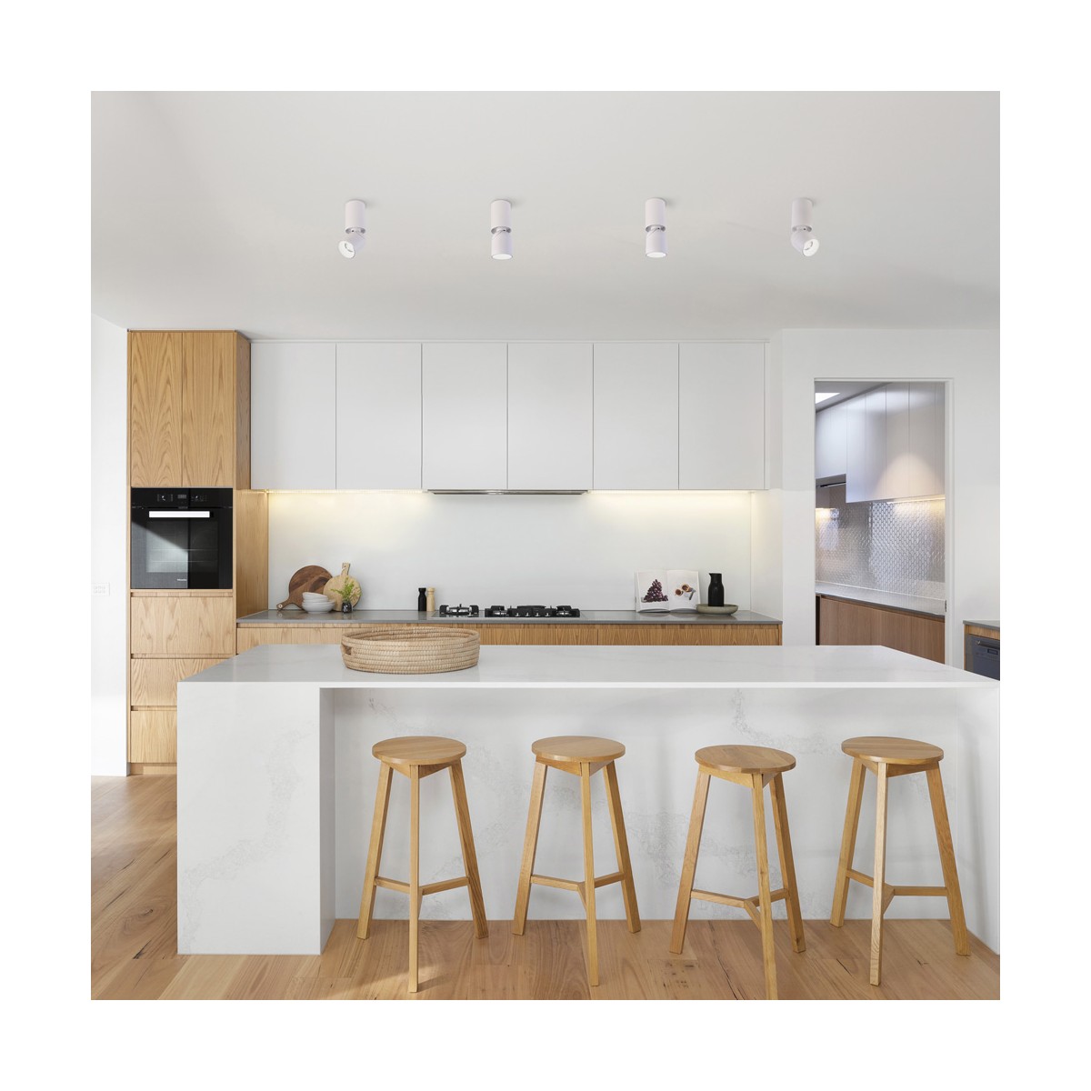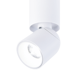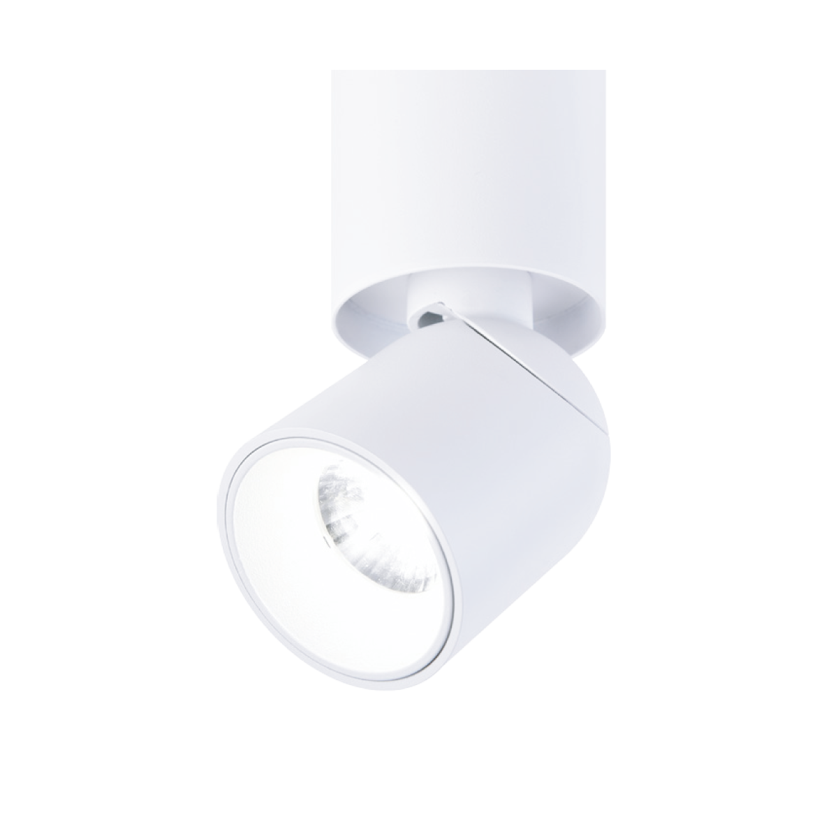 Adjustable surface spotlight in white. Adjustable LED spotlight designed to illuminate a specific point with the focused light it emits. The spotlight can be rotated through 180º to direct the light towards the point to be illuminated. Easy installation directly on the surface. 8W LED, 900 lumens and 4000K.