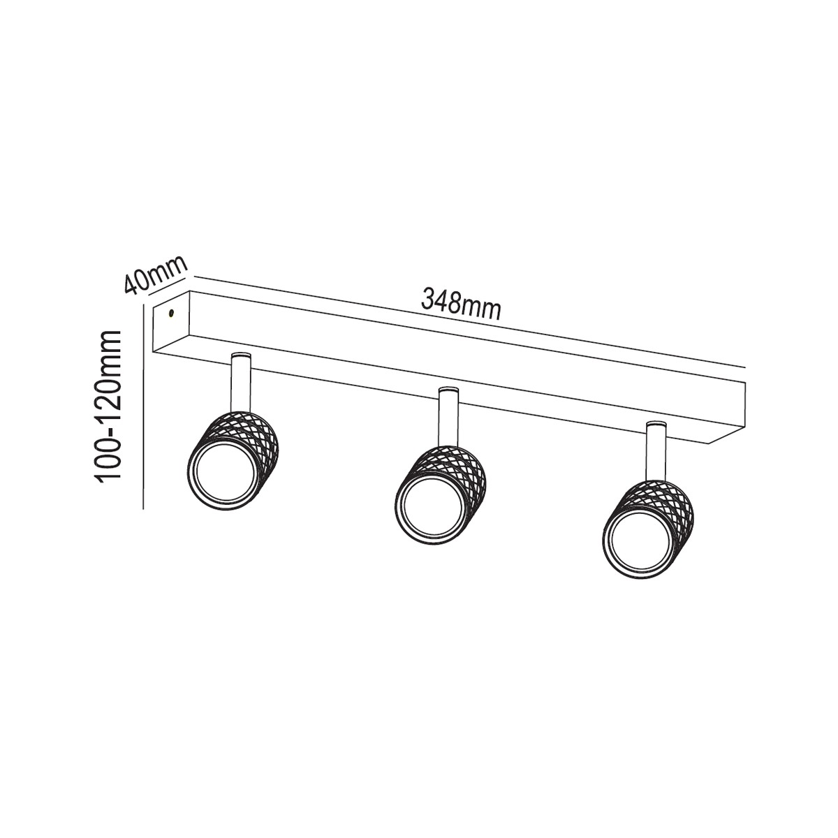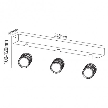 Ceiling strip with adjustable spotlights. The spotlights are designed to operate with GU10-35 bulbs (not included). Each spotlight can be moved individually to direct the light to the desired spot. Sandblasted white finish. Base 40x348 mm.