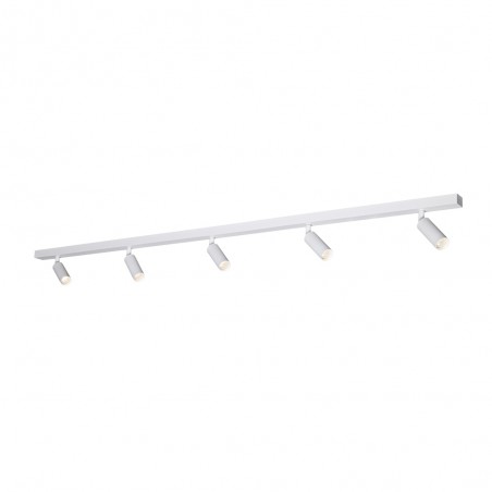 Strip of five adjustable spotlights Slim. Aluminium tubular spotlights for G9 LED bulbs (not included). Each spotlight can be moved to direct the light to the desired spot. Sandblasted white finish. Ceiling or wall installation. Base 30x1150 mm.