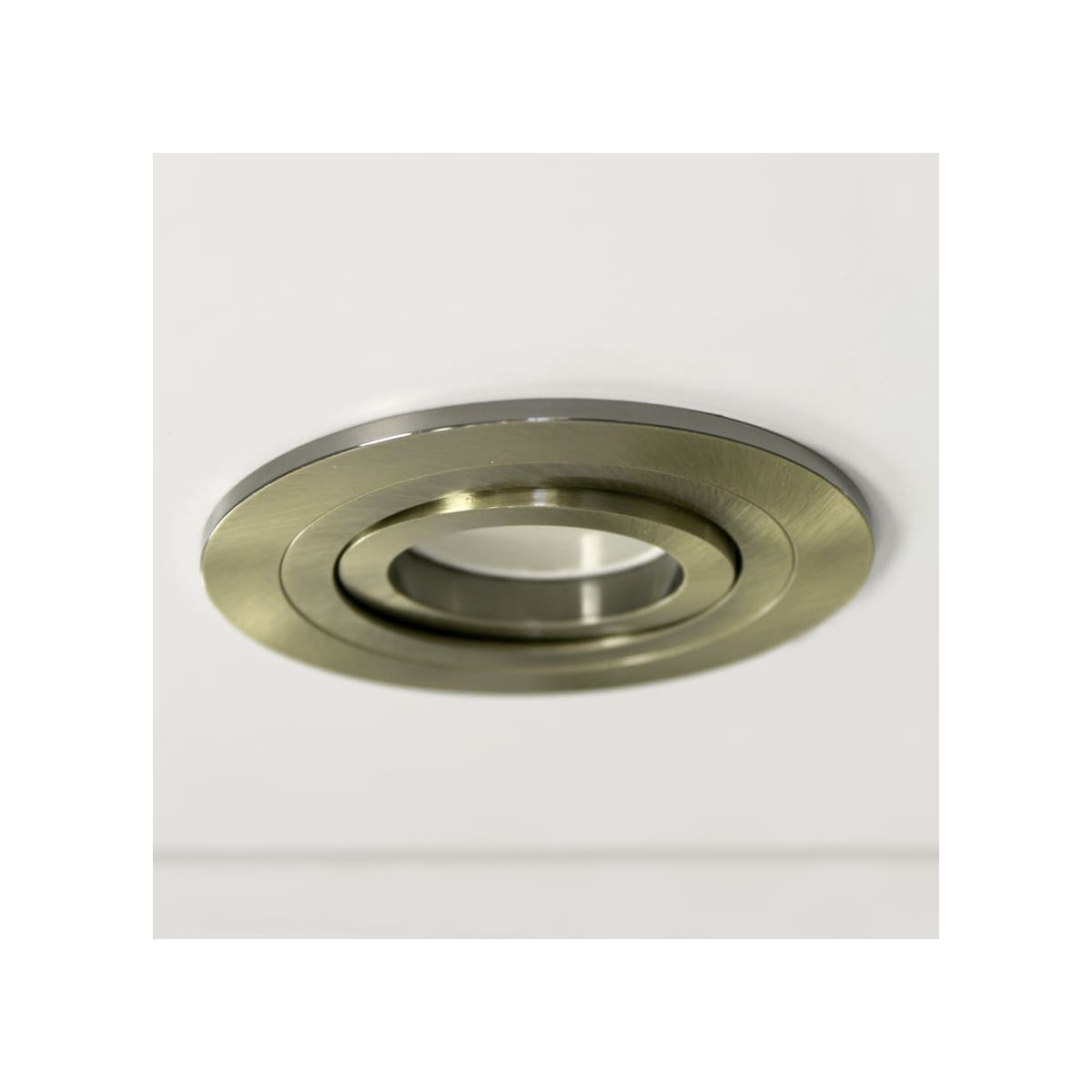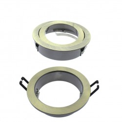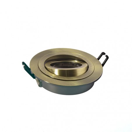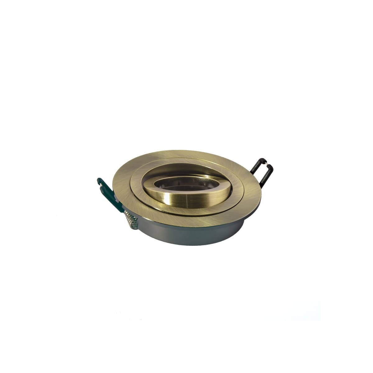 Round aluminium movable spotlight in antique brass finish. It includes a GU10 lampholder. Measures 93mm each side and has a ceiling hole diameter of 80mm. It is not necessary to remove the recessed light to replace the bulb, the inner ring can be removed to change the bulb.