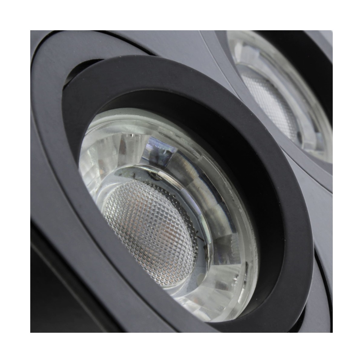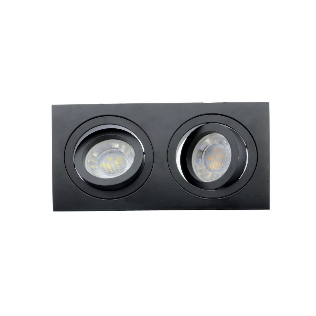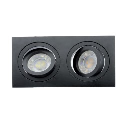 Rectangular spotlight for recessing in false ceilings, with two 30° tilting lights and bulb replacement from the front. Structure made of polished aluminium, matt black lacquered. Includes GU10 lampholder, bulbs not included. Perfect for lighting in corridors, living rooms, bedrooms, shops, fashion shops, restaurants, etc...