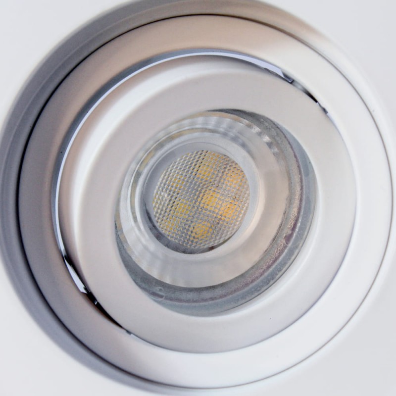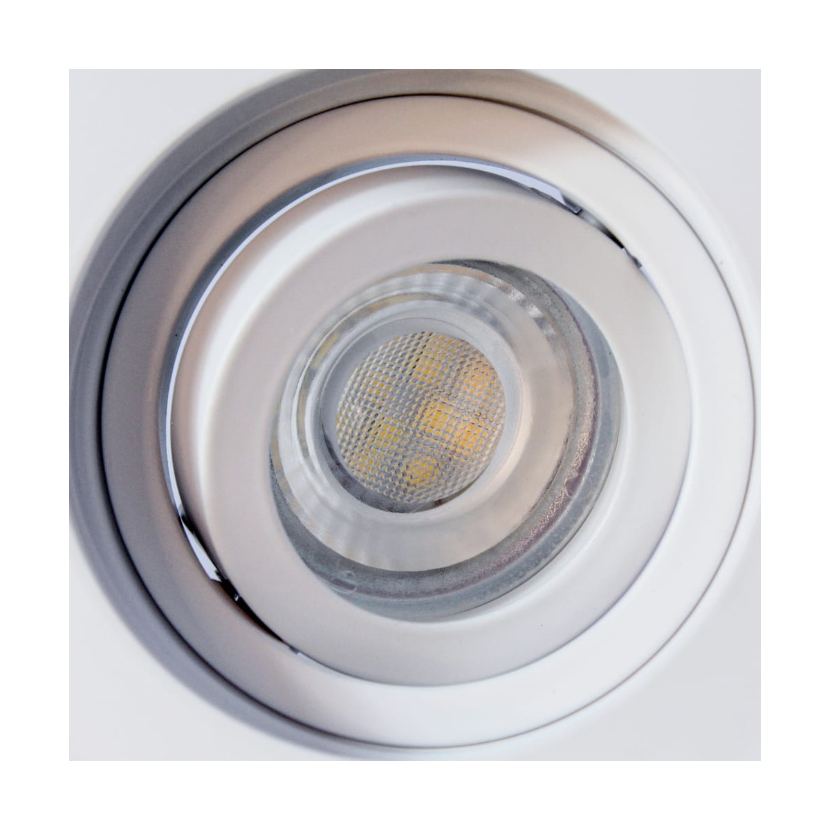 Aluminium recessed spotlight, round with easy bulb replacement from front side. Includes GU10 lampholder.