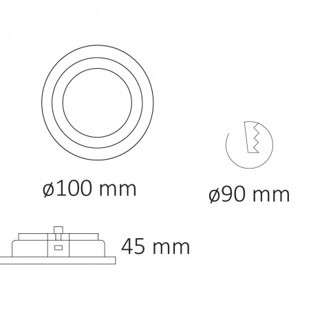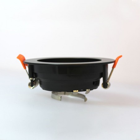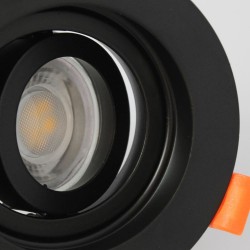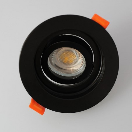 Aluminium recessed spotlight, round with easy bulb replacement from front side. Includes GU10 lampholder.