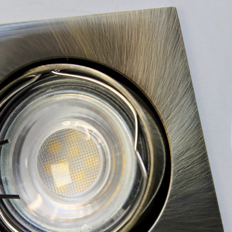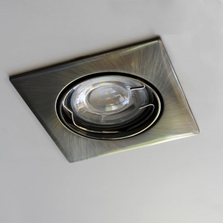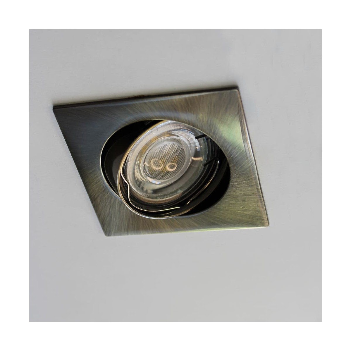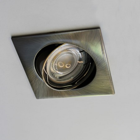 A recessed light made of aluminium with a classic design and a metallic finish. This model has a square shape, antique brass finish, IP 20 and tilting bulb. Its simple and attractive design makes it suitable for a variety of different living spaces. With GU5.3 fitting. *Bulb not included.