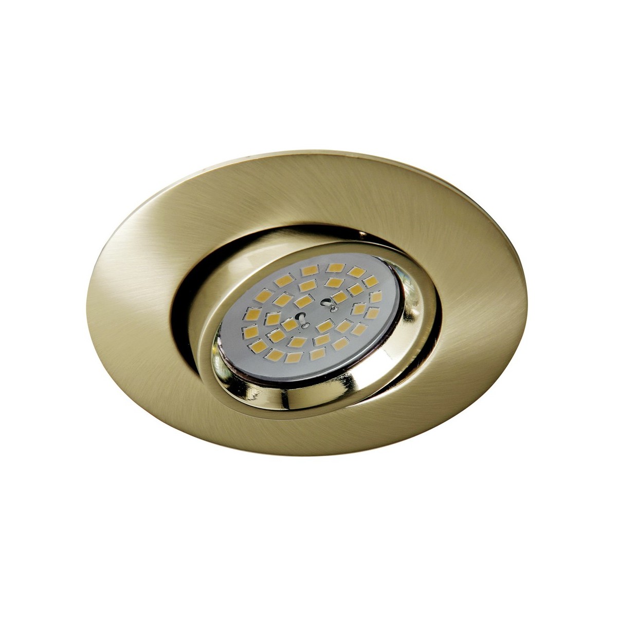 Round Recessed Light Terra made of aluminium in an antique brass finish. This model allows you to tilt the bulb 45° and direct the light where you need. Simple and elegant design perfect to place over your pieces of artwork. GU5.3 fitting. *Bulb not included.