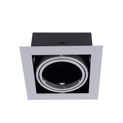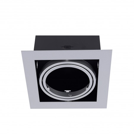 Single Cardan Downlight made of sheet steel. The lighting module allows 30° of adjustable tilt to suit your needs. Ideal for commercial and public spaces, as well as retail applications. G10 fitting included to be used with QR111 bulbs. *Bulb not included.