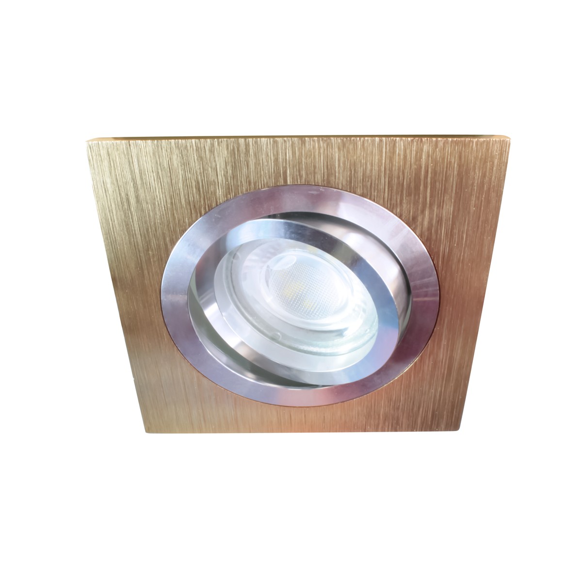 Recessed ceiling light designed in a square shape and anodised copper finish, with GU10 fitting. The bulb can be tilted with an angle of rotation of 30° to suit the room at your individual taste. With a sleek modern look, this ceiling light would be perfect to illuminate hallways, living rooms, bed rooms or commercial spaces. *Bulb not included.