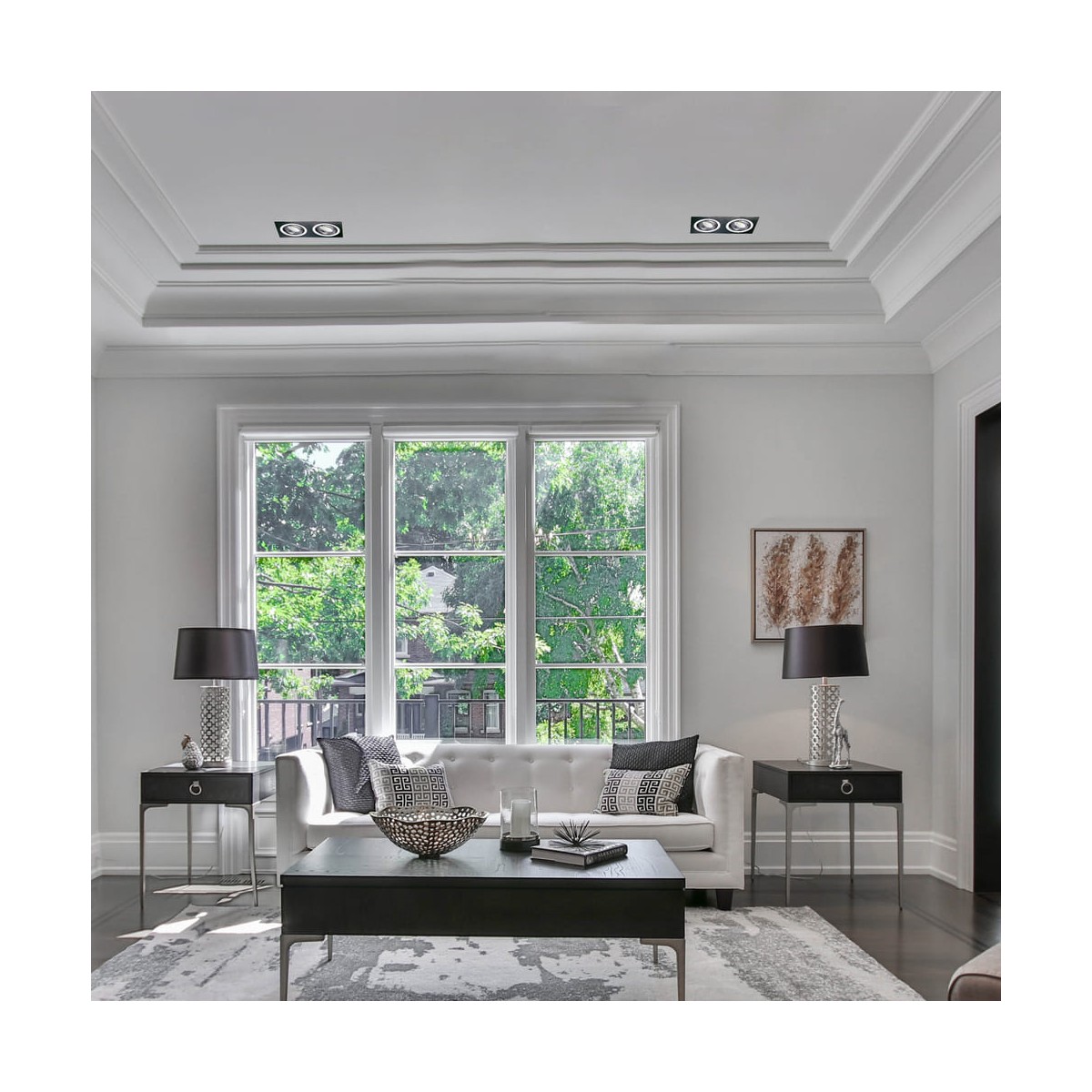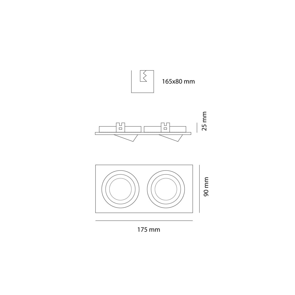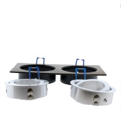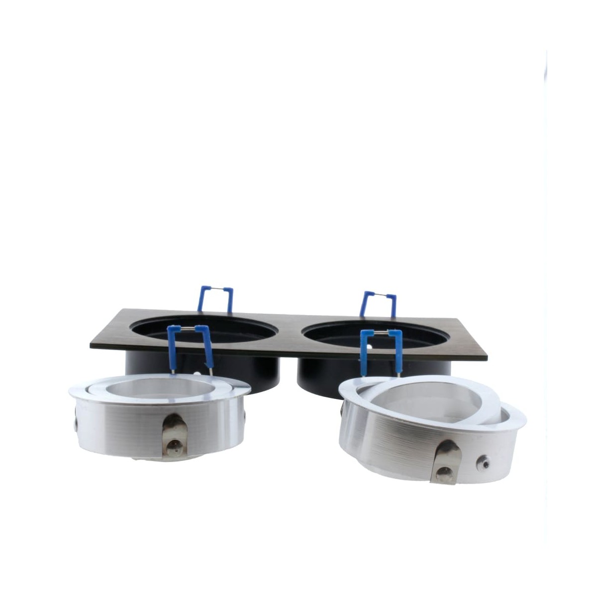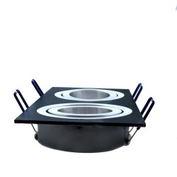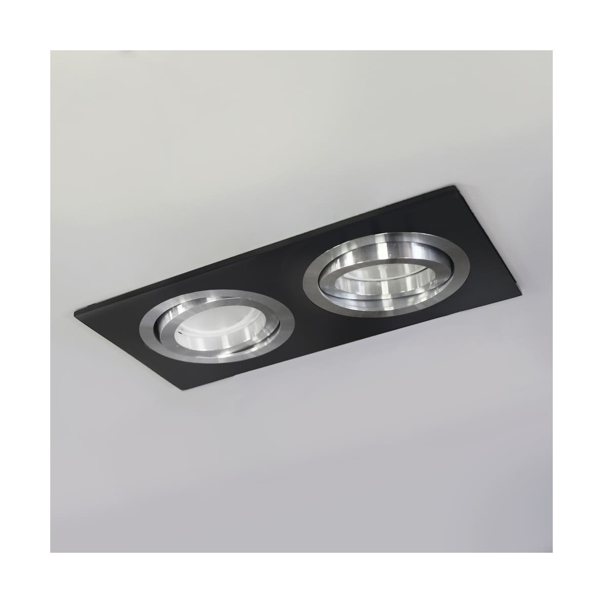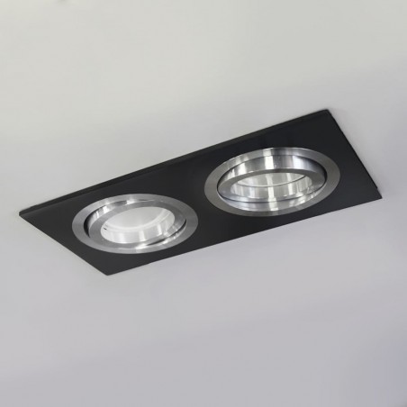 Double recessed ceiling light designed in a rectangular shape and black finish, with GU10 fittings. The bulbs can be tilted with an angle of rotation of 30° to suit the room at your individual taste. This model will provide that extra lighting needed for big spaces allowing you to direct the light to different points of the room. *Bulbs not included.