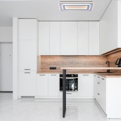 LED ceiling flush light Cryn with Smart technology. Modern ceiling lamp with dimmable light intensity and three colour temperatures (3000K-4000K-6000K). You can control the ceiling light with your smartphone via an app. Ceiling light for the main lighting of a spacious living room, bedroom or kitchen. These ceiling lights have a power-on memory so that when the light is switched off and on again, the last set lighting remains fixed.