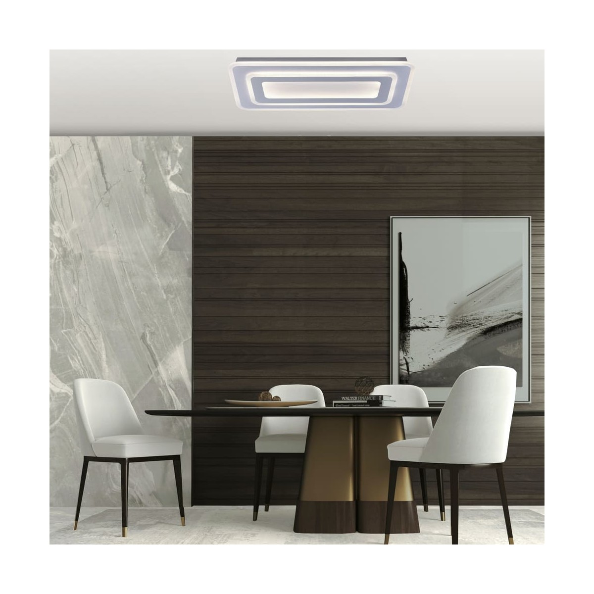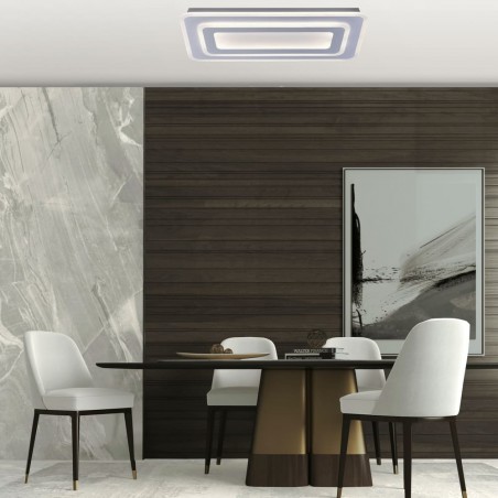 LED ceiling light Cryn with neutral white colour temperature. This modern ceiling light is ideal for installation as main lighting in a bedroom, living room or bedroom. Rectangular design ceiling light with integrated 56W LED light, 4200 lumens luminous intensity and 4000K colour temperature (neutral white light). Switch-on memory.