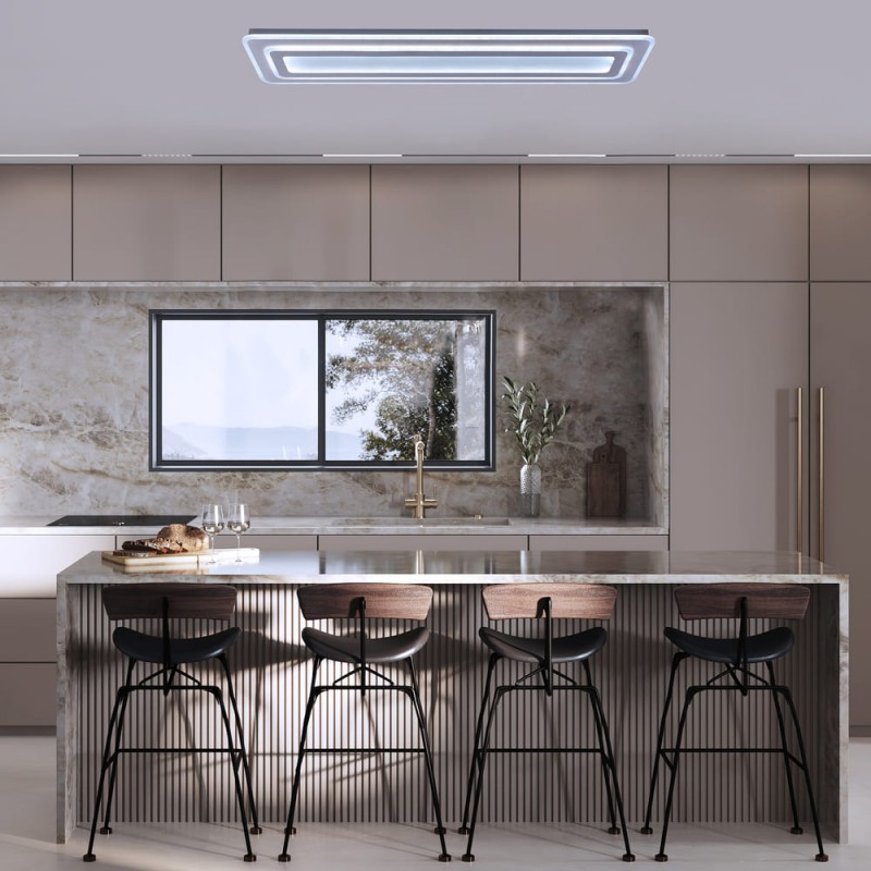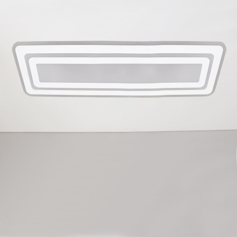 LED ceiling light Cryn with cool colour temperature. This modern ceiling light is ideal for installation as main lighting in a bedroom, living room or bedroom. Rectangular design ceiling light with integrated 64W LED light, 5200 lumens luminous intensity and 6000K colour temperature (cool light). Switch-on memory.