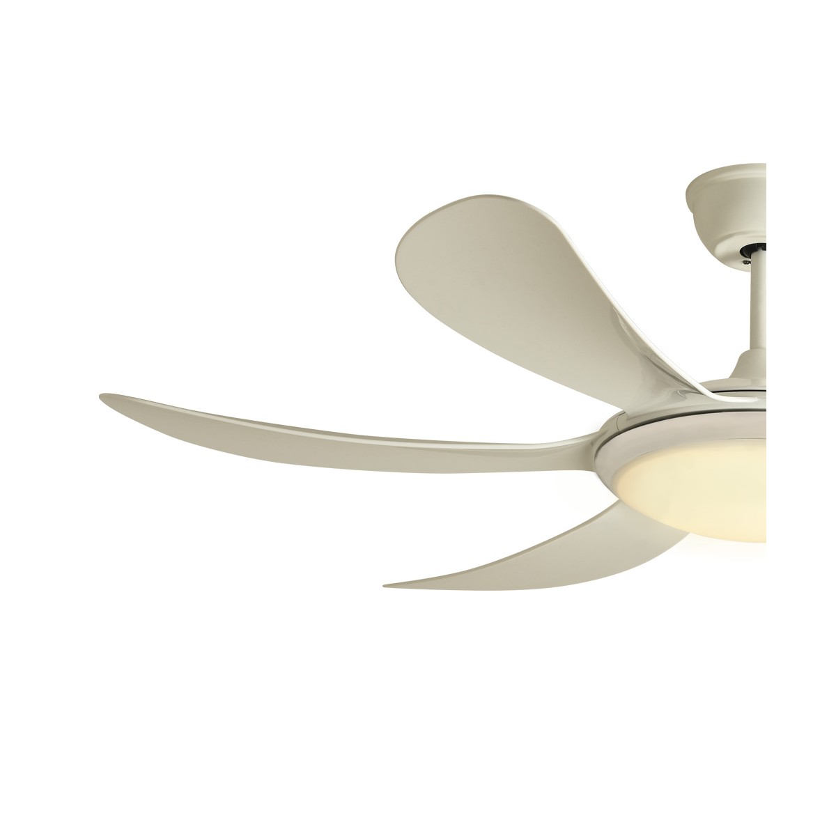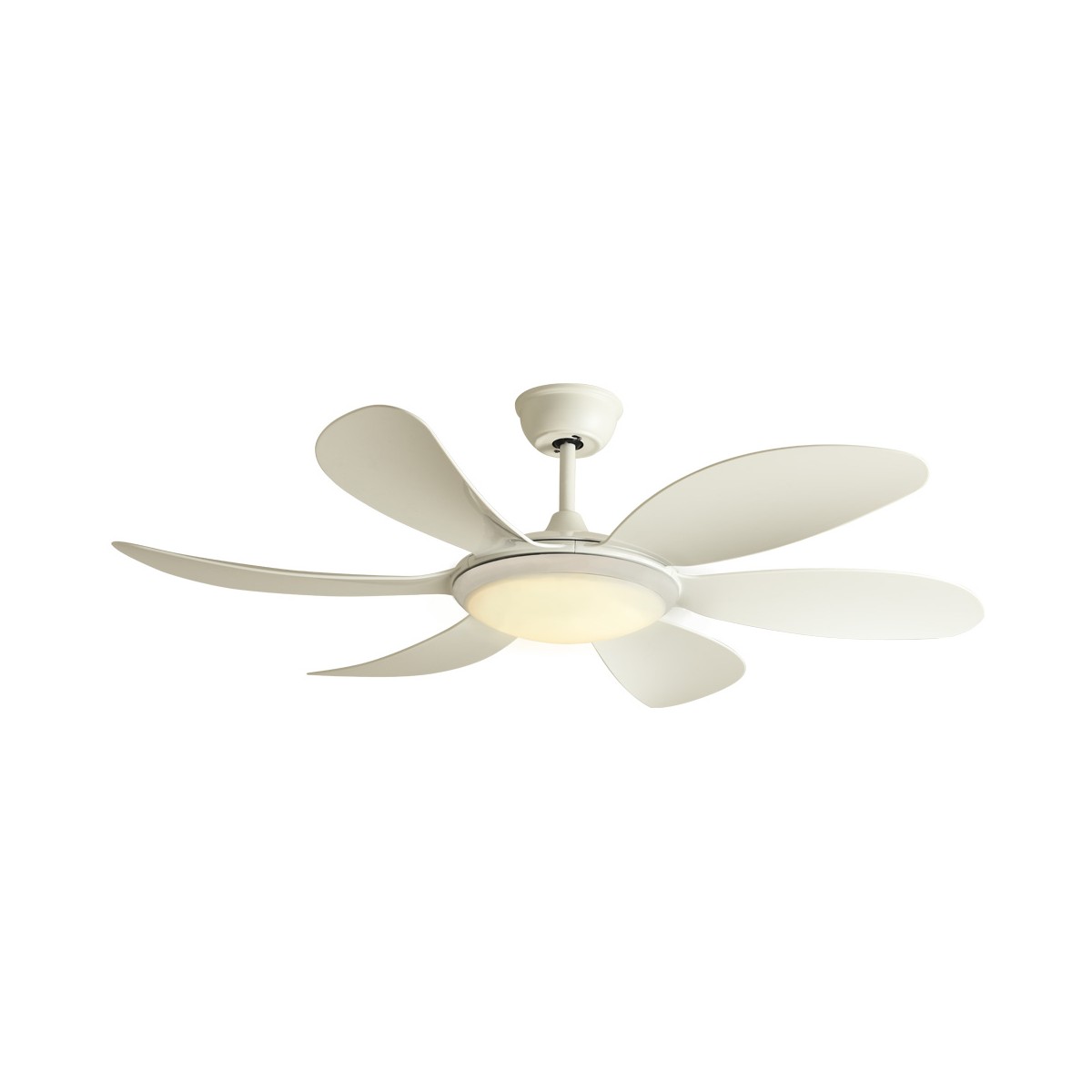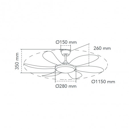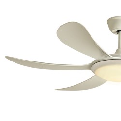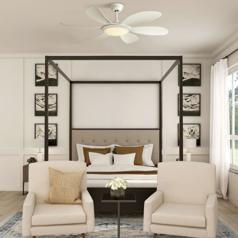 LED ceiling Fan with three light temperatures (3500K-6000K). Silent DC motor with 5 different speeds and includes timer of 1h, 4h and 8h and summer-winter function. Includes remote control to change the light. It keeps switch on memory.