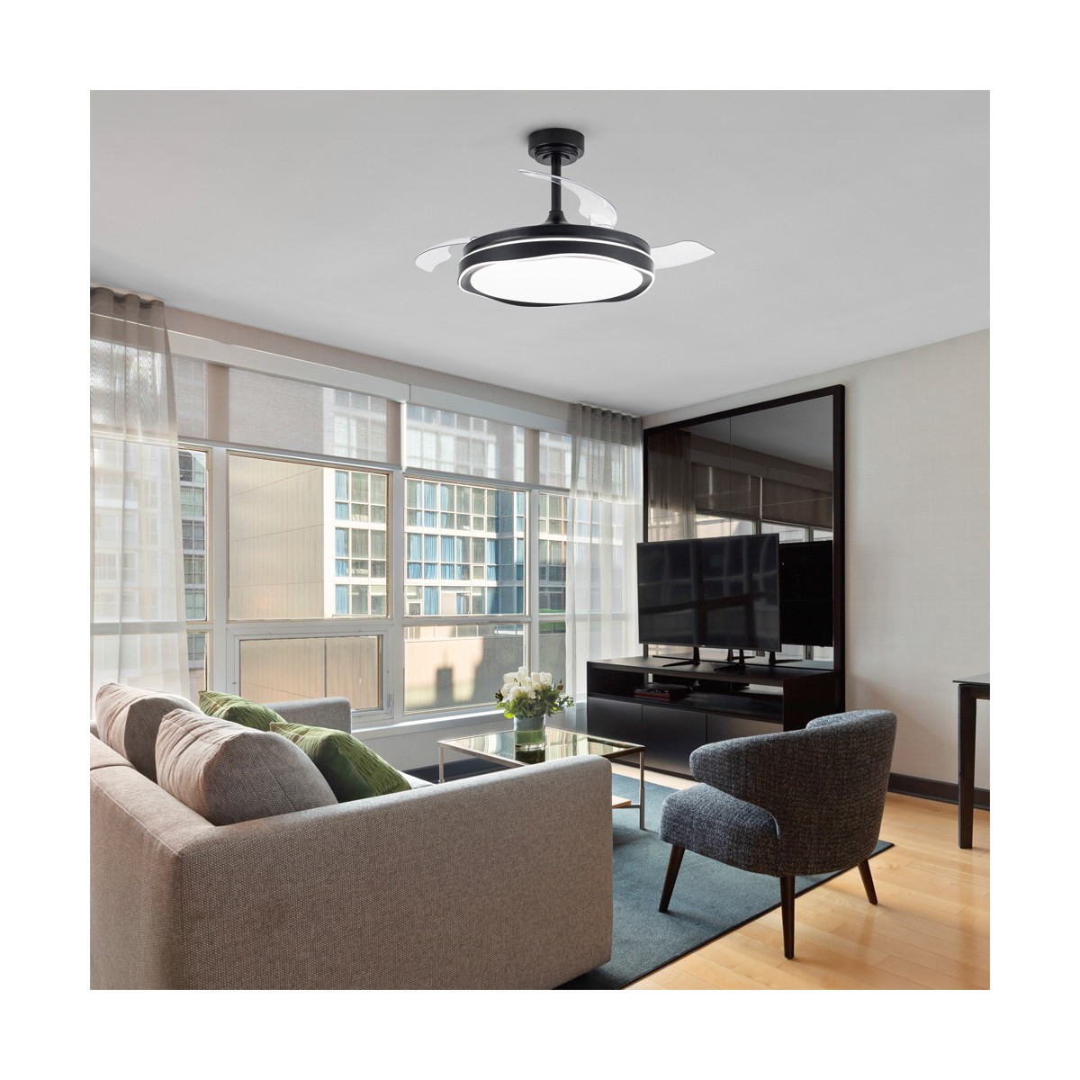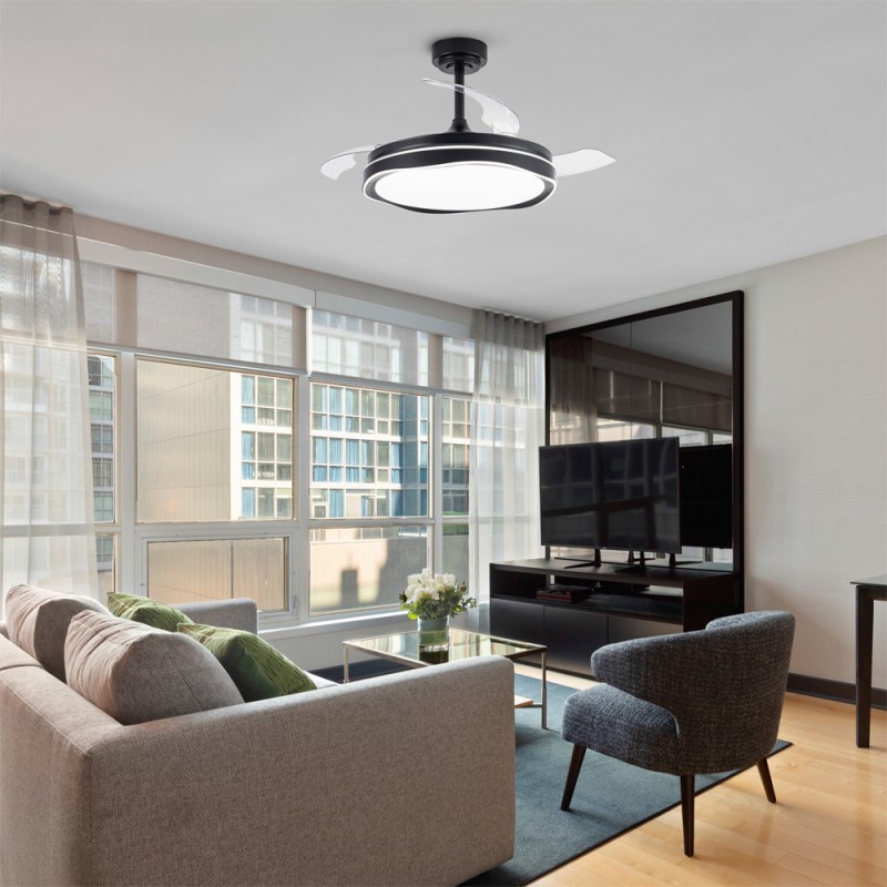 Oku Black LED Ceiling Fan 72W 7920Lm CCT Folding Blades