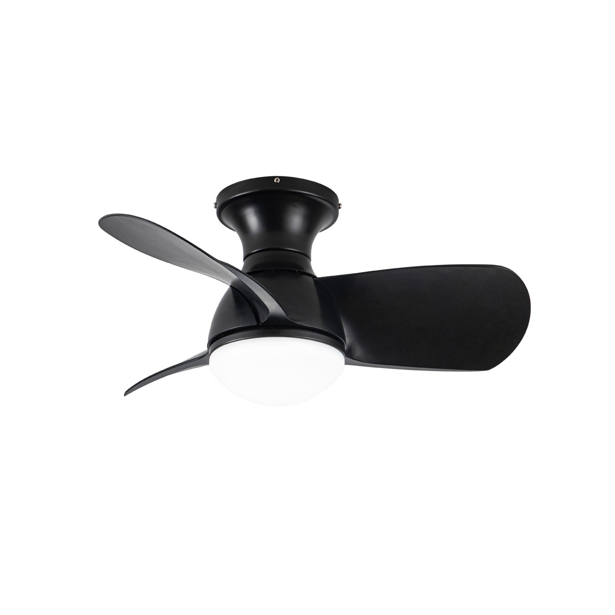 Ceiling fan with LED light for small rooms. Small sized ceiling fan designed for bedrooms and rooms of less than 13 square metres. LED lighting adjustable in intensity and colour temperature. The motor is DC so it emits very little noise and has six rotation speeds. Quiet black fan with three ABS blades.