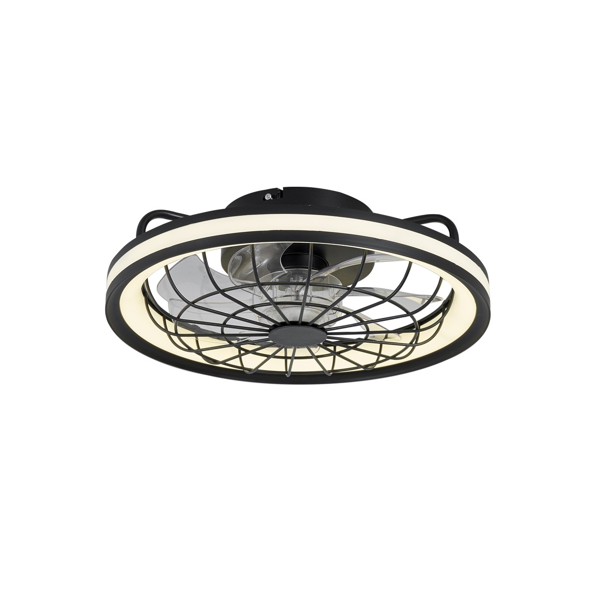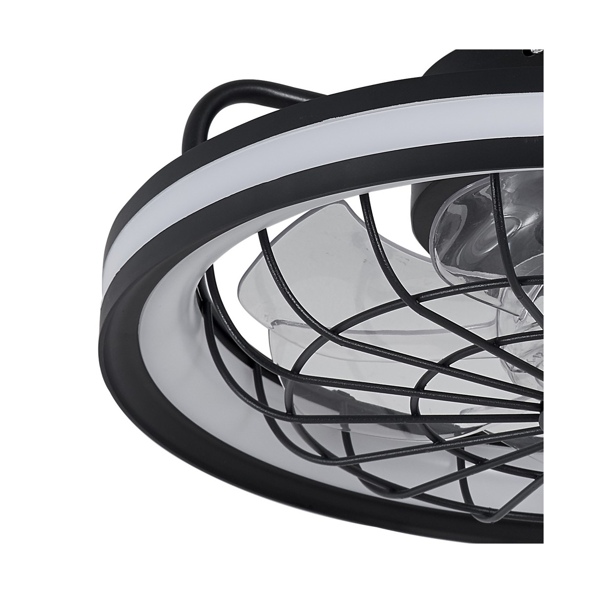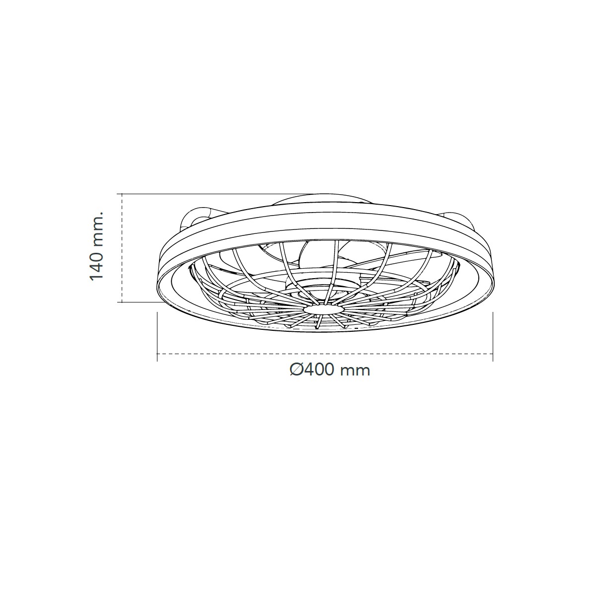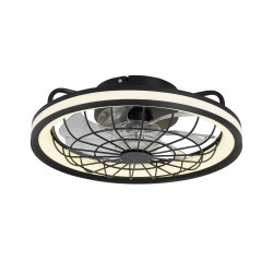 Rafale LED ceiling fan. Quiet modern style fan for bedrooms and open plan kitchens. Circular grille design with the blades integrated inside. The light is projected through a diffuser that runs around the inside and outside of the fan. Quiet DC motor with six rotation speeds, reverse function for year-round use and timer (1-2-4h.). You can regulate the intensity and colour tone of the light. Remote control included.