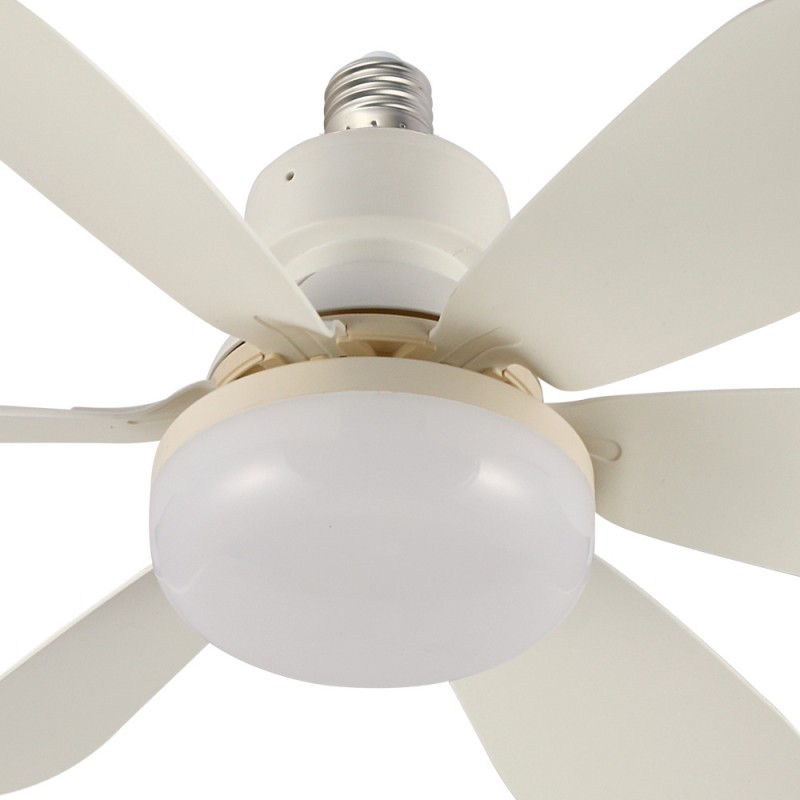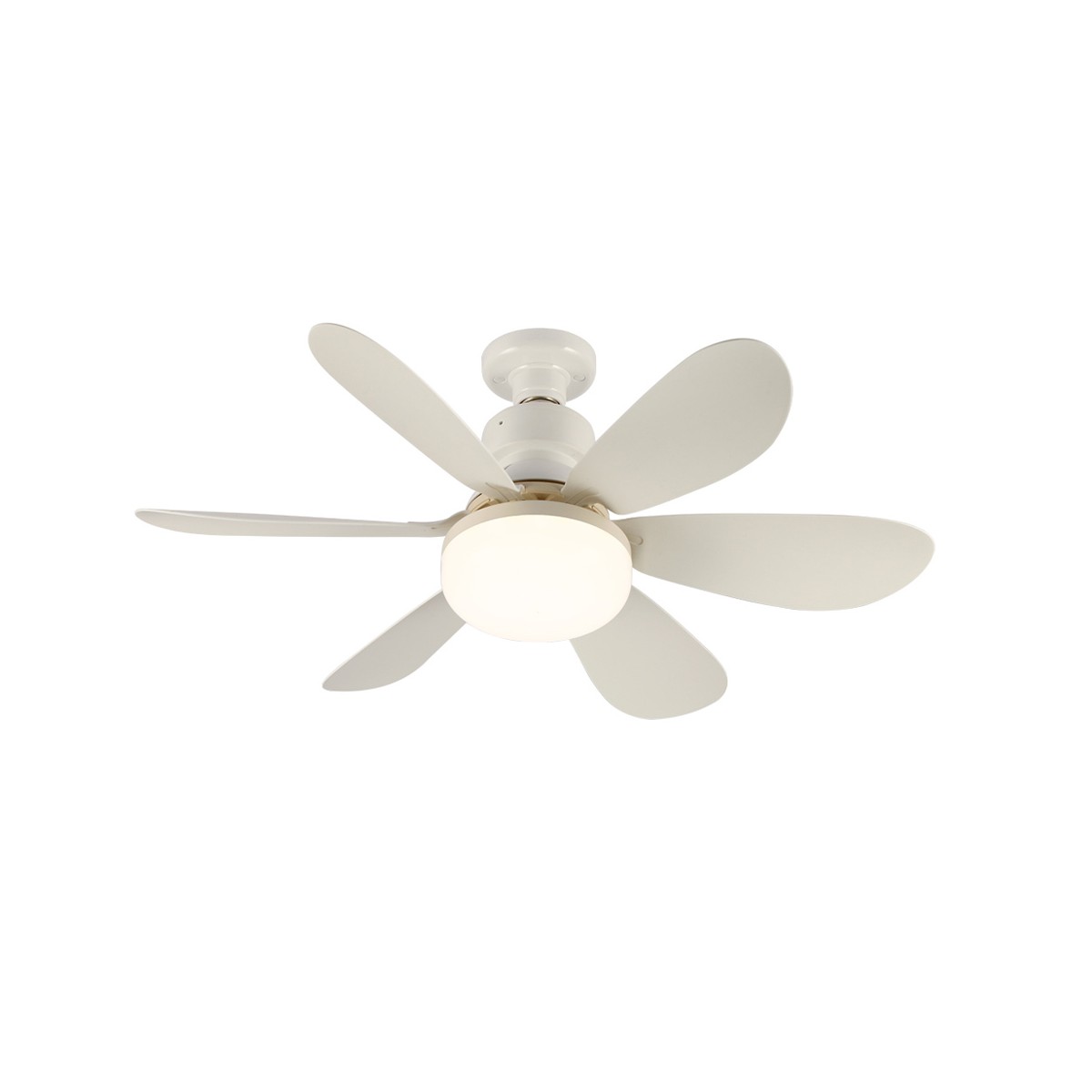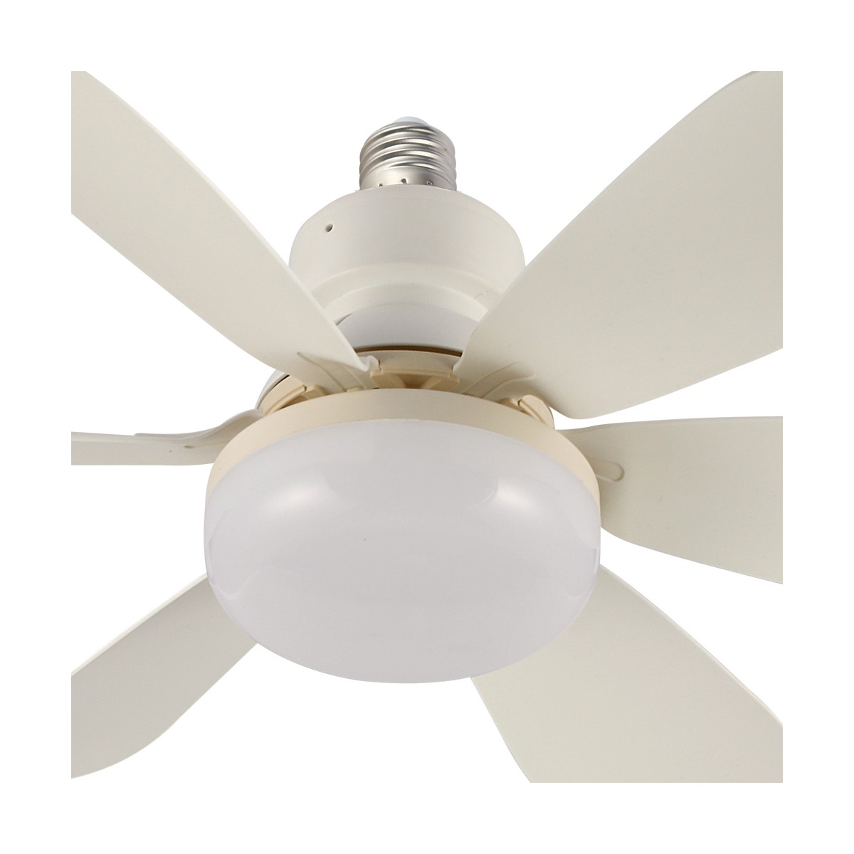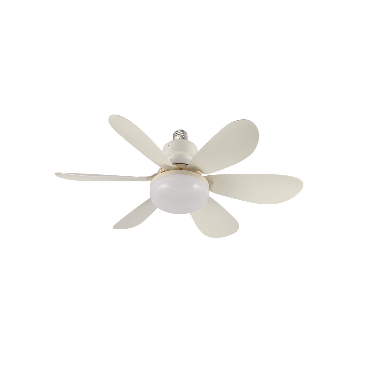 Nikiya children's ceiling fan with LED light. Ceiling fan with a design designed to be placed in children's rooms. It offers a design in the shape of an E27 bulb (installation base not included*) with six white ABS blades. Designed for children's bedrooms. Three speed AC motor. Remote control included.