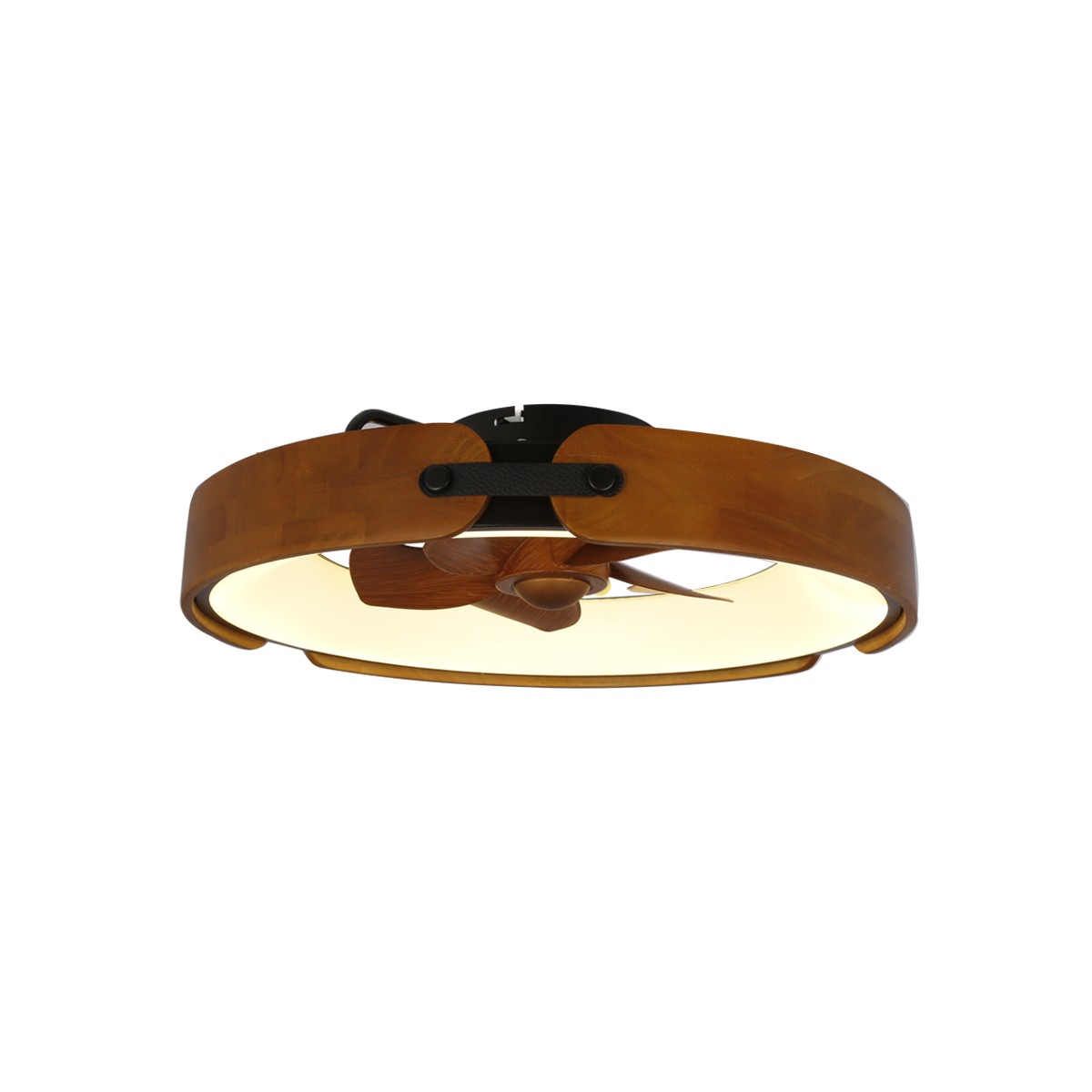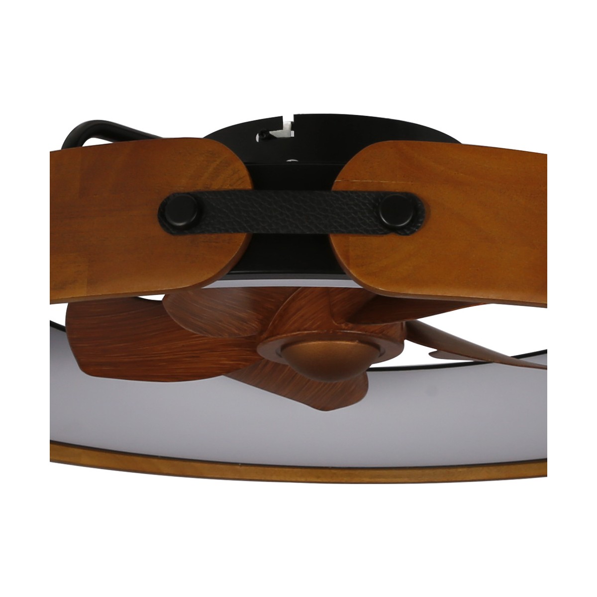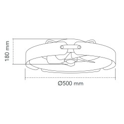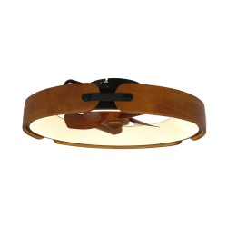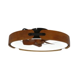 Messer rustic ceiling fan with LED lighting. Circular brown fan with integrated blades inside. Its design allows to provide a concentrated air flow directly downwards in the fan position. Made of rustic brown iron, PMMA diffuser and integrated wood-effect PC blades. Six-speed DC motor and adjustable LED lighting.