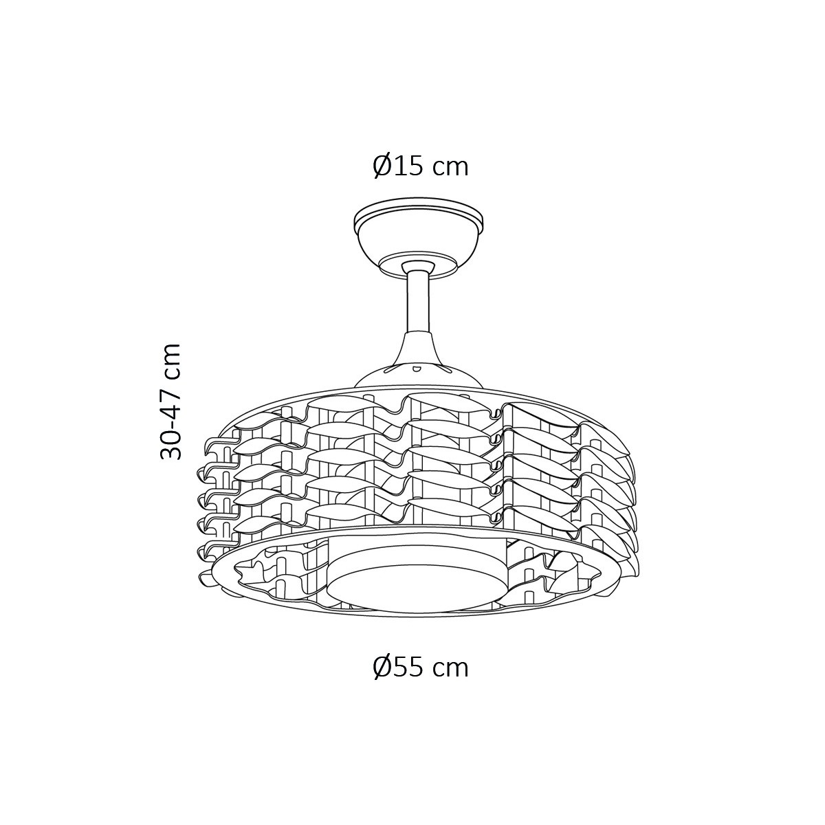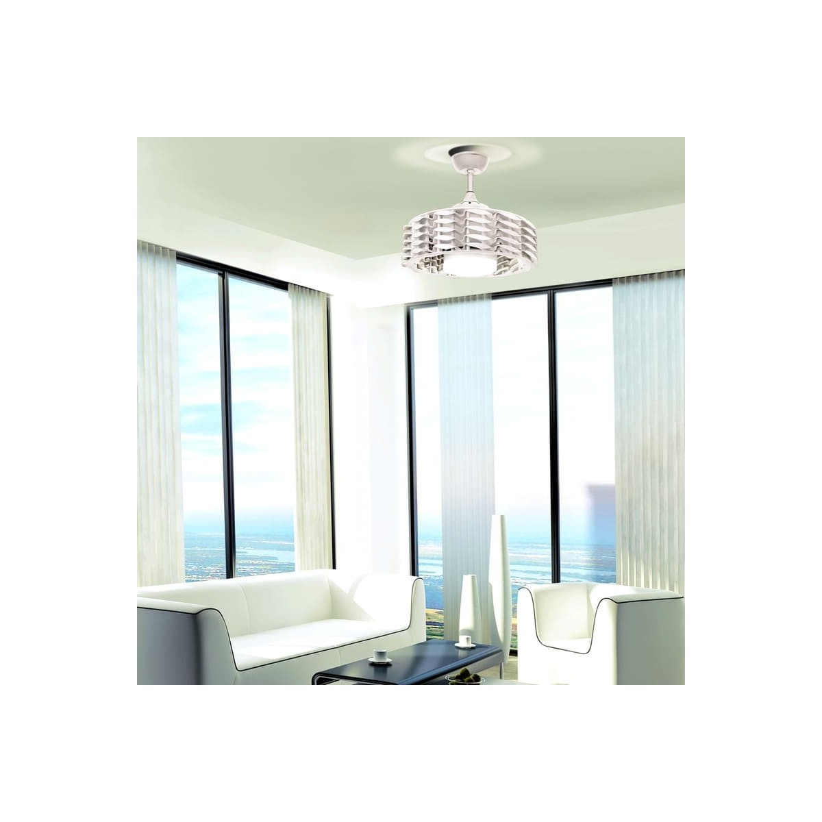Alum Collection Ceiling fan with light in white finish has a silent DC motor ceiling fan. Its motor allows to reduce the energy consumption and at the same time to achieve a lower noise in its running. It includes two rods of 12.5 and 25 cm. It has integrated 24W, 2410lm LED lighting with three light colours (warm light, neutral light and cold light). The included remote control has a timer function for programming the switch-off after 1-2-4-8 hours.
