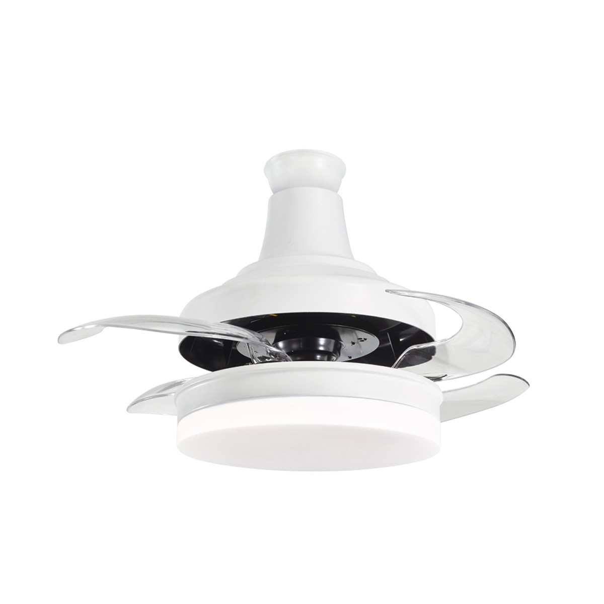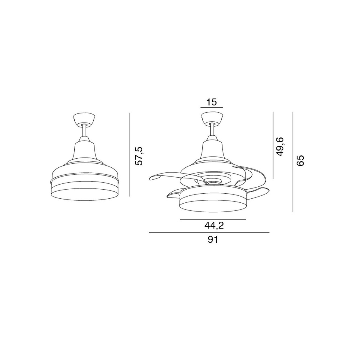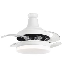 LED Ceiling fan Bell with 6-speed DC silent motor. It has a powerful LED lighting of 55W with three different light temperatures and adjustable intensity. When the fan is off the blades are hidden inside the fan case. When turned on, the lower part of the fan moves down so that the 4 blades are unfolded. Includes timer, switch-on memory. Can be used just as a ceiling light when the ventilation is not needed.