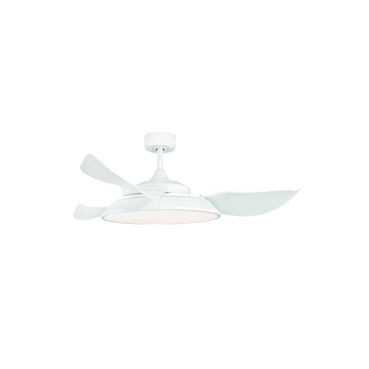 DC LED Ceiling fan Lince in white finish, steel made motor, ABS blades and acrylic diffuser. Its integrated LED lighting of 55W and 2600 lm can be used in three temperature 3CCT. The included remote control operates the with timer function, 6 speeds and the switch-on memory. Includes two extension rods for installation at different heights. Perfect for large rooms, as a main lighting source with its beautiful design and pleasant ventilating option.