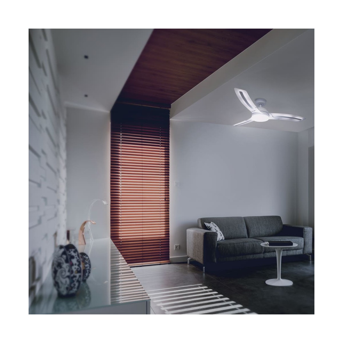 This ceiling fan has integrated Smart technology, which allows you to control the fan from your phone thanks to the Tuya App, compatible with Amazon Alexa and Google Assistant.