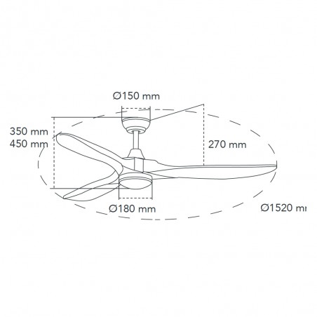 Yenbig is a silent Ceiling fan for large rooms with DC motor with natural wood blades in dark finish and nickel structure. Integrated 15W LED lighting with three light tones. It works with 5 different speeds and includes summer/winter function. It includes remote control that facilitates you to program the fan to turn off by setting 1-2-4-8 hours of operation, and also set a switch-on memory.