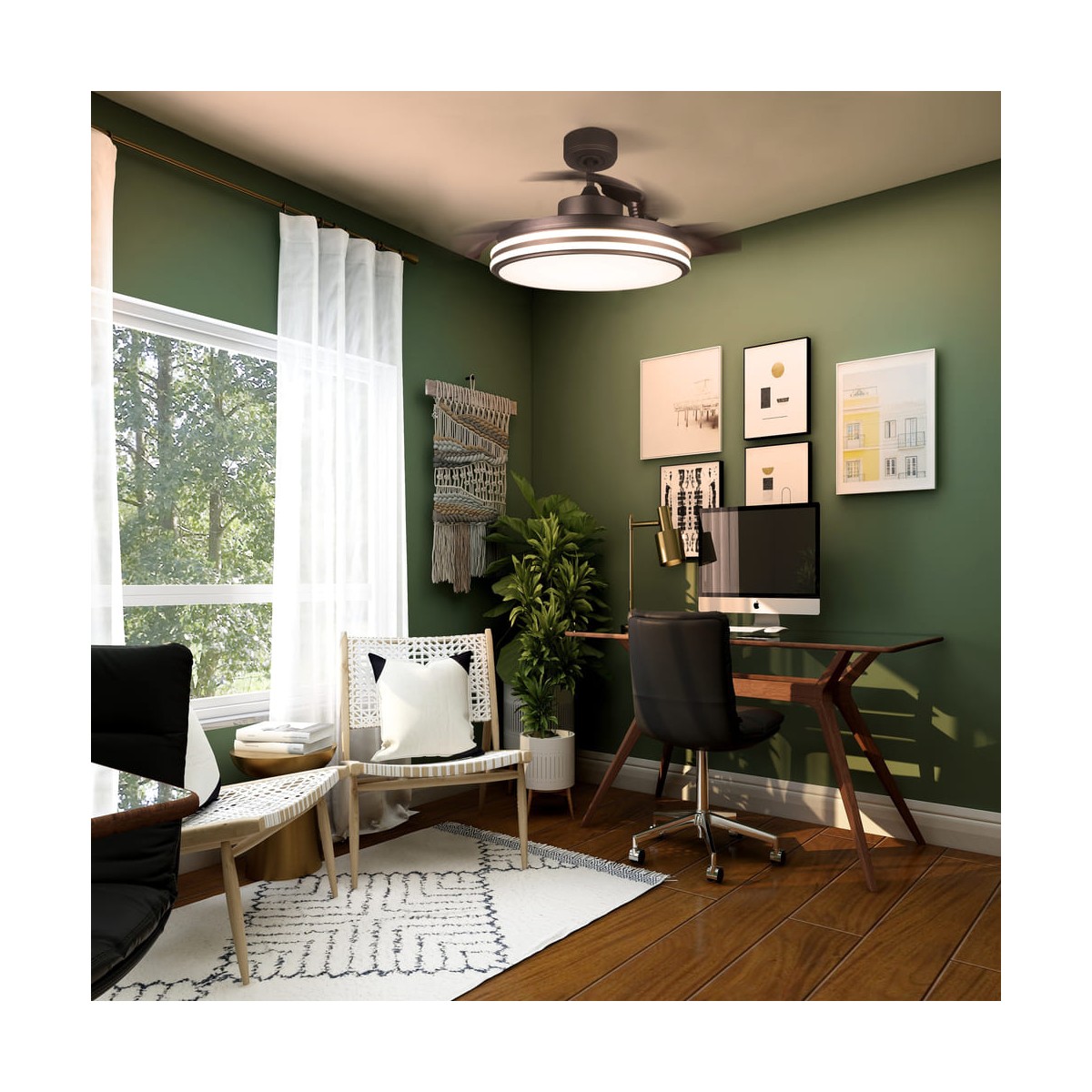 Translucent black folding blades ceiling fan with DC motor. Thanks to its motor it allows to reduce consumption achieving up to 6 speeds while generating very little noise. This fan has integrated 35W LED lighting with three light tones. It also has a breeze function, which changes from one speed to another automatically, creating an atmosphere with natural air.