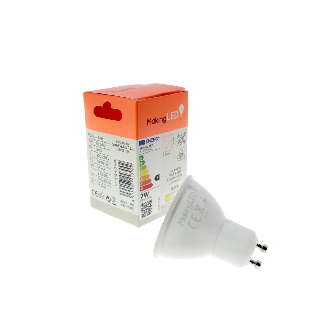 Using only 7 watt, each bulb has the capacity to last for up to 25000 hours. Equivalent to 75 watts, these high luminosity LED lamps produce 700 lumens of neutral light 4000K. A high quality and great efficiency range of LED lamps.