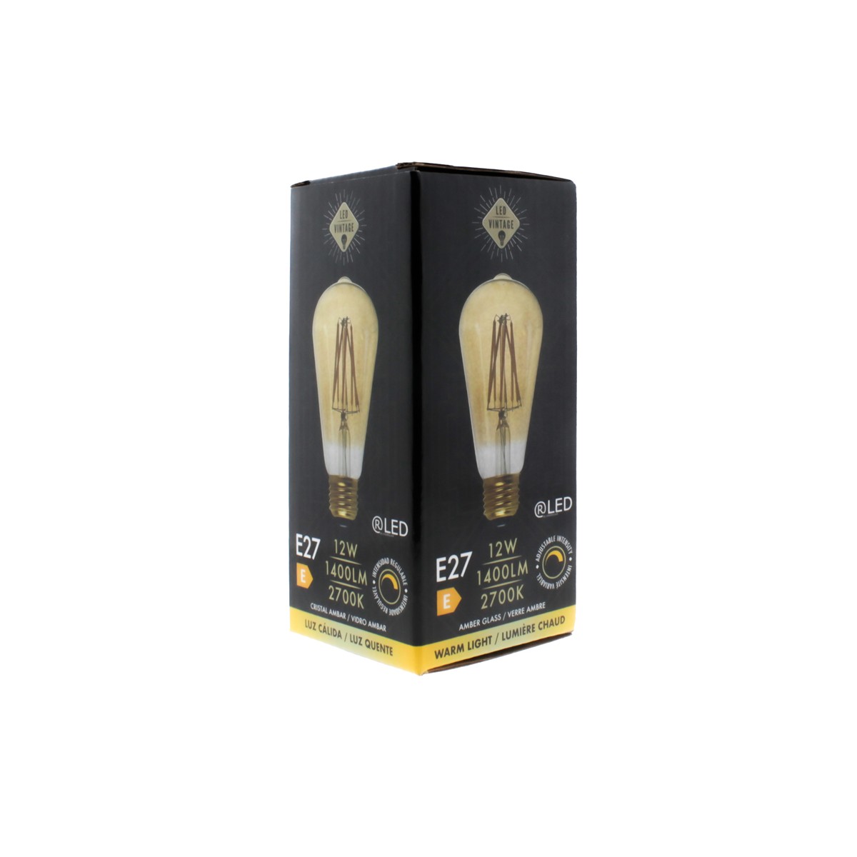 Decorative standard filament bulb. Gold glass bulb with filaments ideal for decorative lighting. LED 12W, 1400 lumens and warm colour temperature (2700K).
