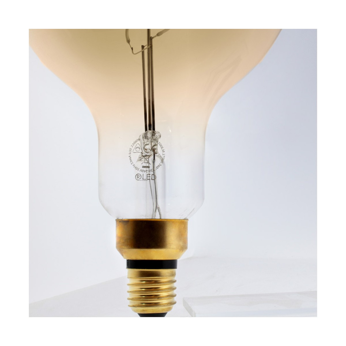 Decorative filament bulb shape BT180. Gold glass bulb with filaments ideal for decorative lighting. LED 12W, 1500 lumens and warm colour temperature (2700K).