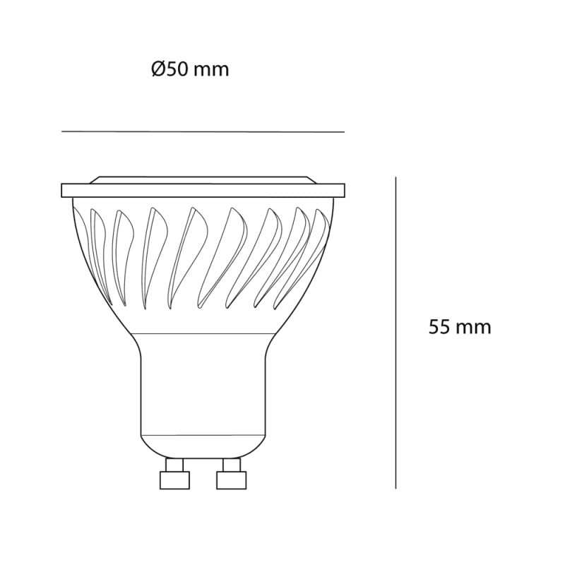 GU10 LED bulb with cool white colour temperature. 6.2W LED illumination, 620 lumens and cool white colour temperature (6000K). 110º light beam. Automatic switch on.