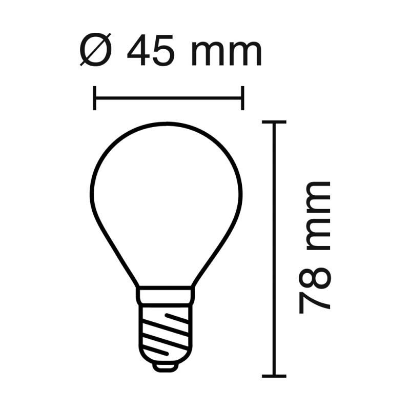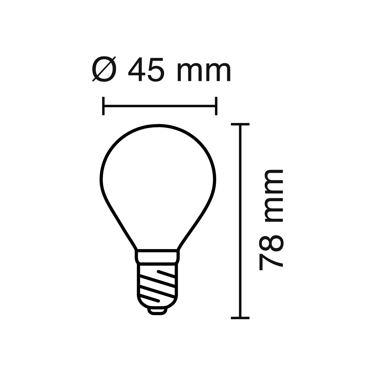 E14 G45 ceramic LED bulb. 78 mm bulb with a diameter of 45 mm, ideal for indoor lighting. 10 W LED, 1000 lumens and colour temperature of 6000K. G45 globe bulb with E14 thread, 35,000-hour lifespan and 220º beam angle.