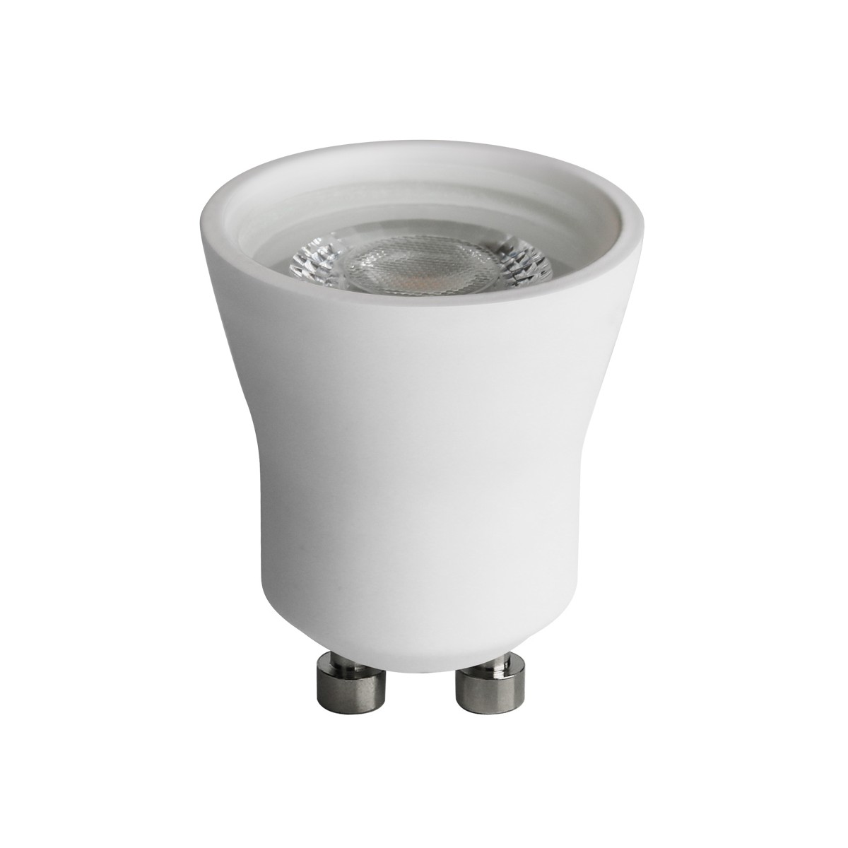 Ceramic GU11 LED bulb. 37 mm bulb with a diameter of 30 mm, ideal for indoor lighting. 4.9 W LED, 420 lumens and colour temperature of 3000 K. 36º beam angle. Dimmable.