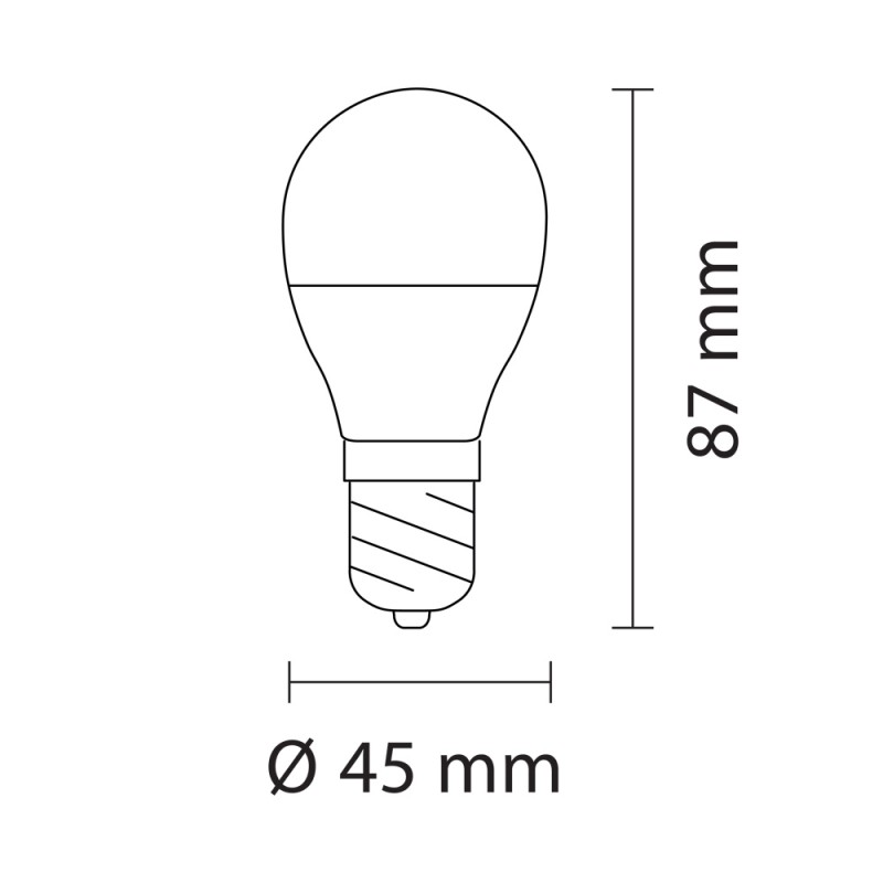 Light bulb with E27 base, 45mm spherical, made of PVC with matt white diffuser.