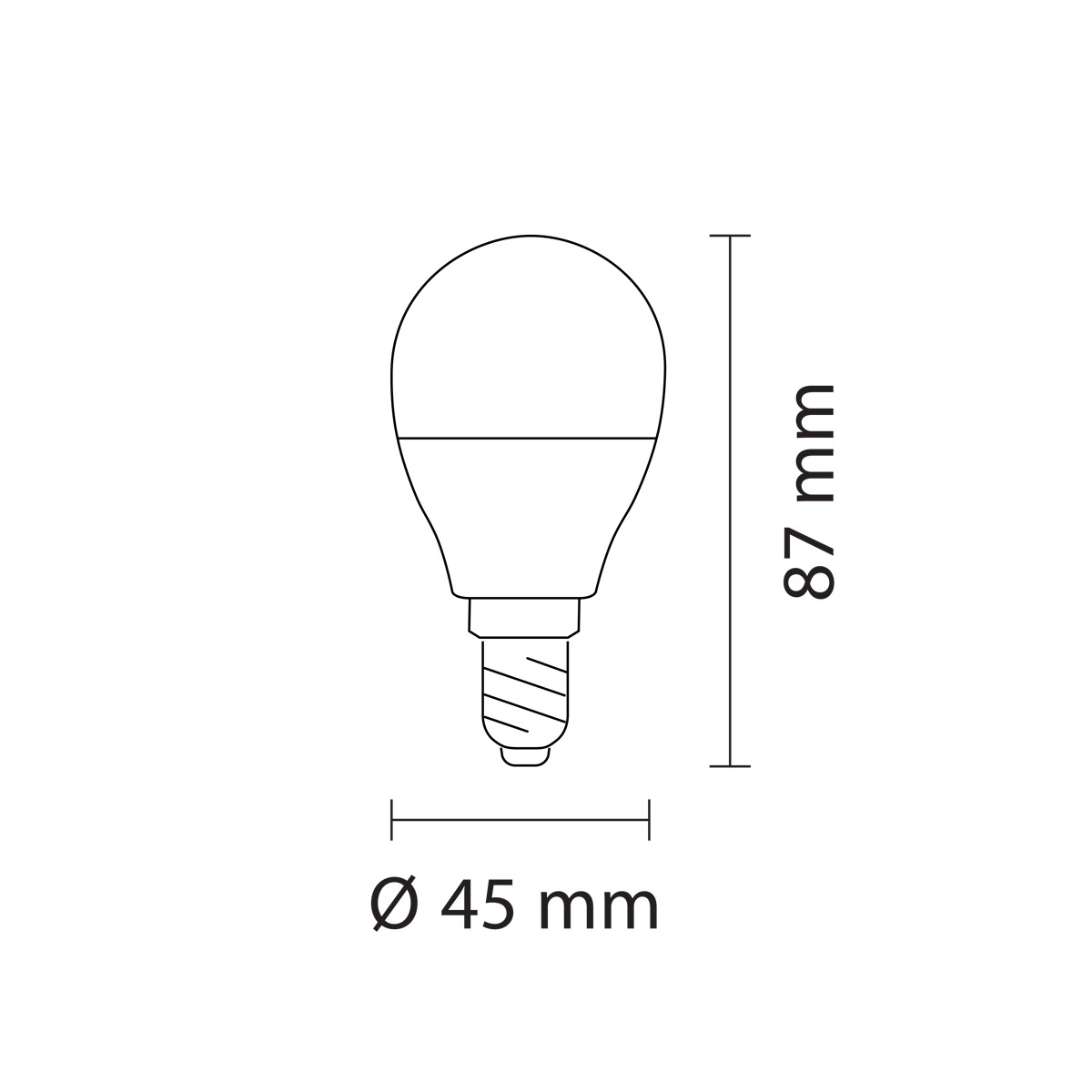 Light bulb with E14 base, 45mm spherical, made of PVC with matt white diffuser.