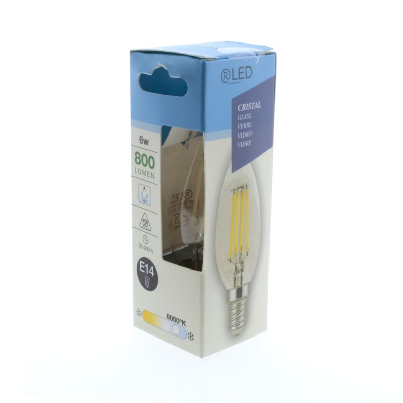 Spherical Decorative LED Bulb E27 45mm made of glass. This 6W shiny white opal bulb has a cold white lighting and 800 lm luminous flux. Will fit perfectly in festoon string lights in your interior lighting project.